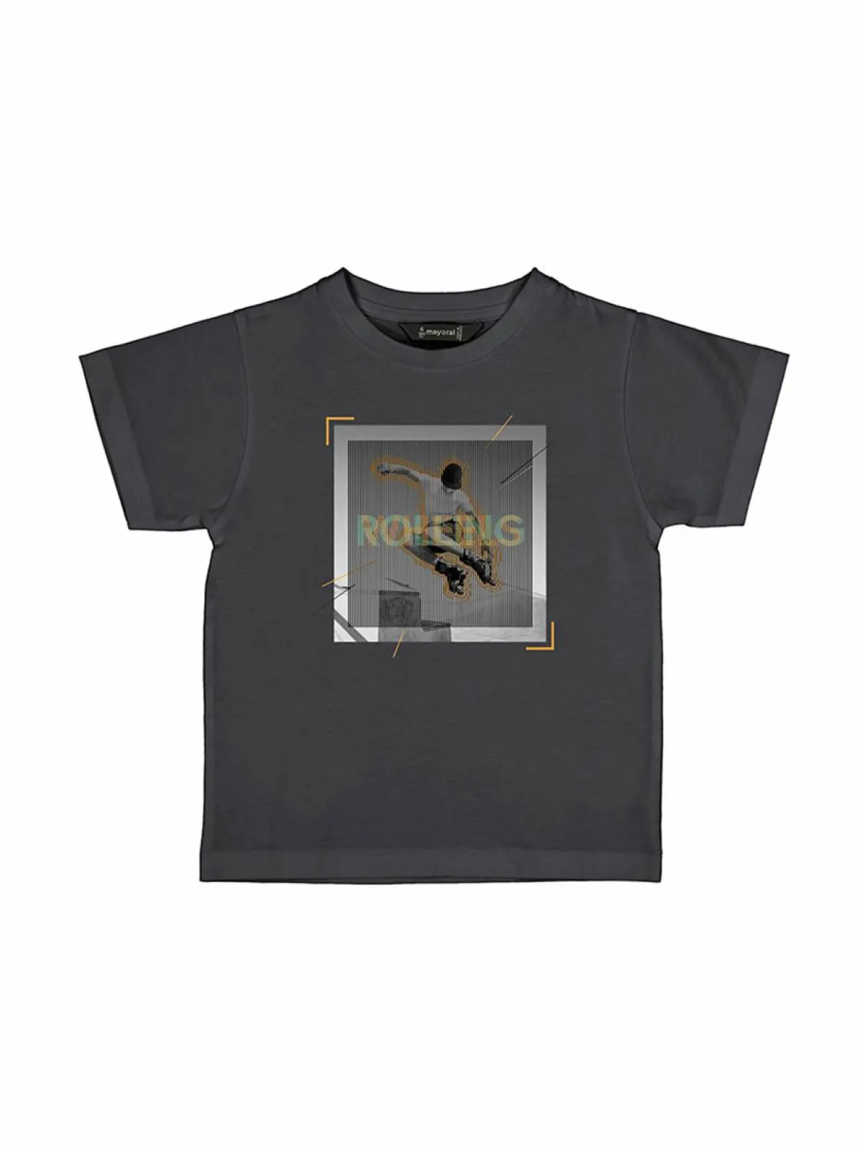 Klassinen trikoopaita urbaanilla Rolling Wheels -printillä. Mayoralin t-paita on valmistettu pehmeästä ja ihoystävällisestä puuvillasta. Siinä on mukava resoripääntie. Paita on suunniteltu normaaliin istuvuuteen.