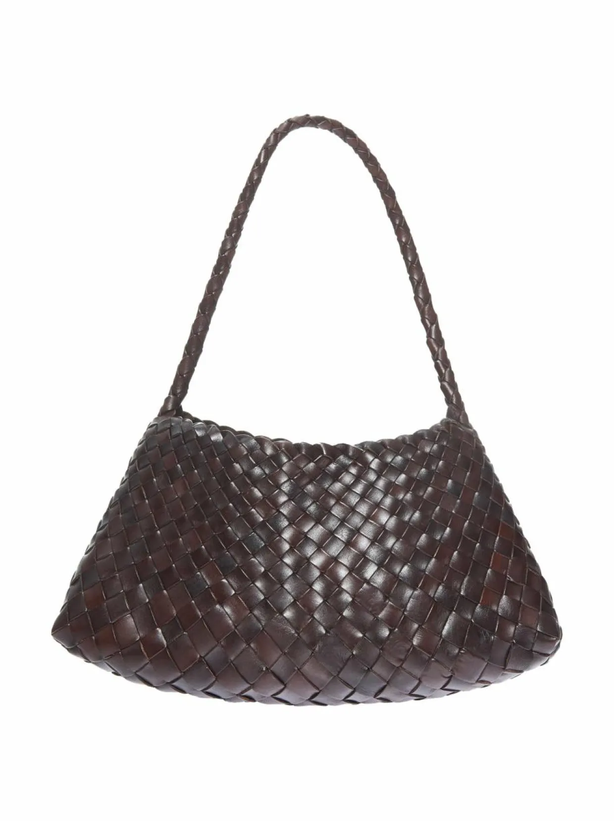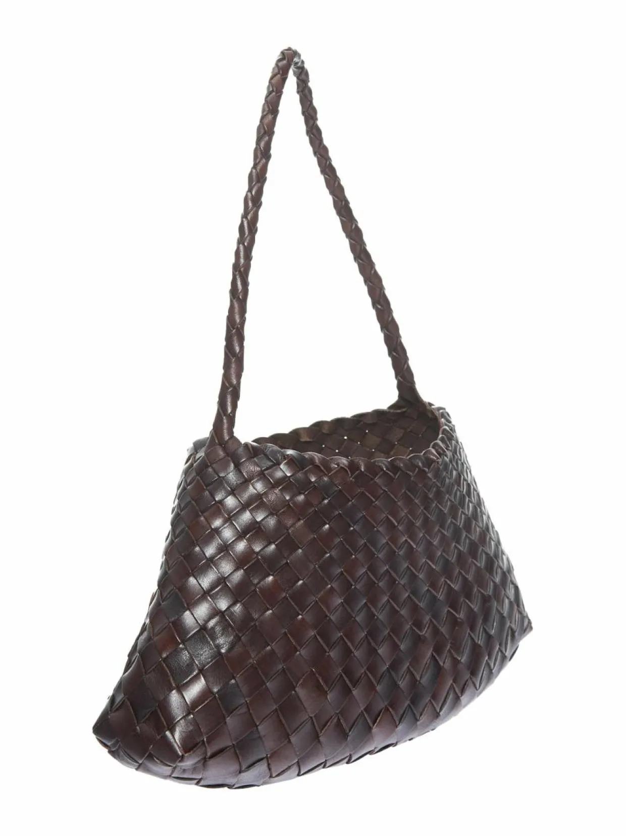 Tuotenumero171911969 MateriaaliNahka VäriDK BROWN KokoOne size AvainsanatDragon Diffusion, nahkalaukku, punottu laukku, olkalaukku