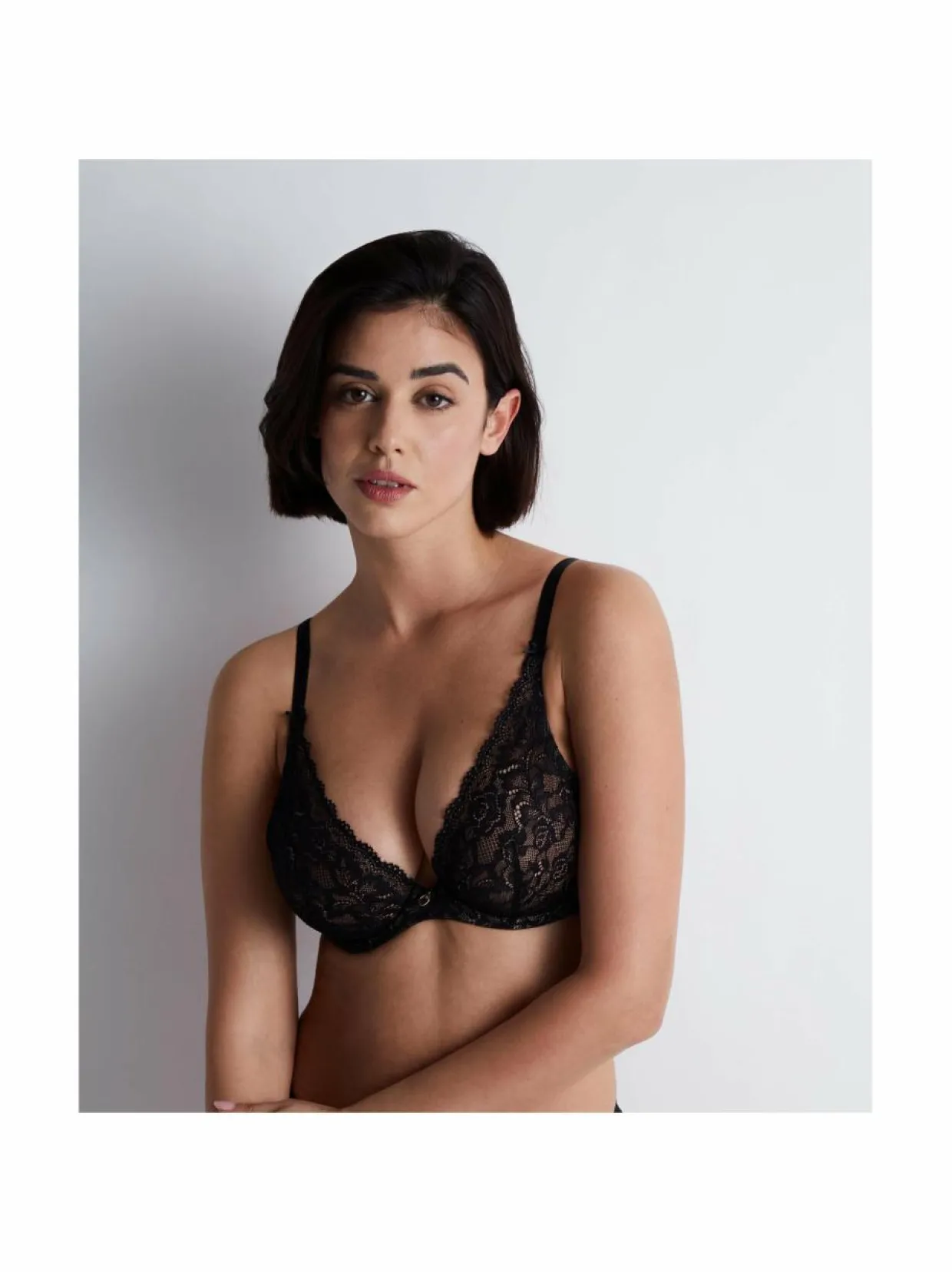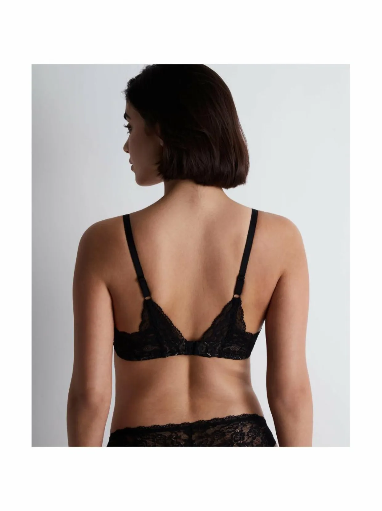Läpikuultavuuden vastakohtana Rosessence-rintaliiveissä on pitsiä, jotka nousevat korkealle rintaan korostaakseen sen kaarevuutta ja tarjoavat erittäin vietteleväm pääntien. Takana on säädettävä kiinnitys, joka varmistaa mukavuuden ja tuen. Nämä elegantit rintaliivit on viimeistelty kauniilla kullansävyisellä koristeella, jossa on Swarovski® -korukivi.