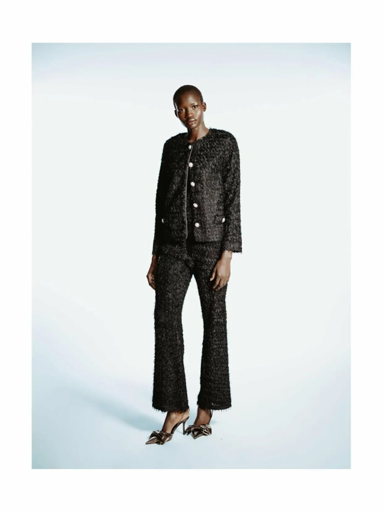 Ida Sjöstedtin Rosie-takki huokuu tyylikästä eleganssia ja glamouria. Chanel-henkinen, rennosti väljä leikkaus yhdistyy ylelliseen, teksturoituun kankaaseen, joka luo takille upean kolmiulotteisen ilmeen. Takki on viimeistelty kauniilla hopeanvärisillä napeilla.