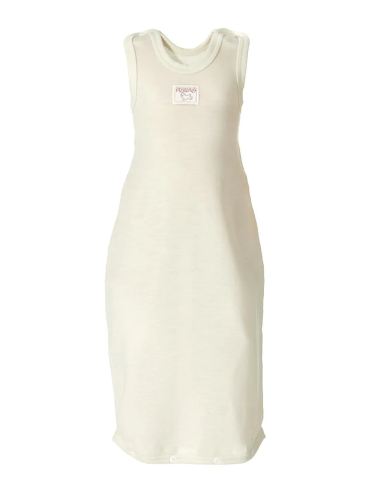 Ruskovilla unipussi on 100% luomumerinovillaa. Unipussin pohja suljetaan neppareilla ja pussi sopii hyvin vauvalle pitkään olkainten säätövaran ansiosta. Unipussin pituus on suurimmalla nepitysvaralla noin 73 cm (olkapää – pussin pohja) ja unipussi sopii noin vuoden ikään.