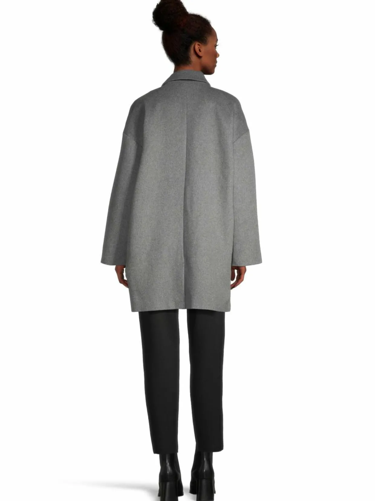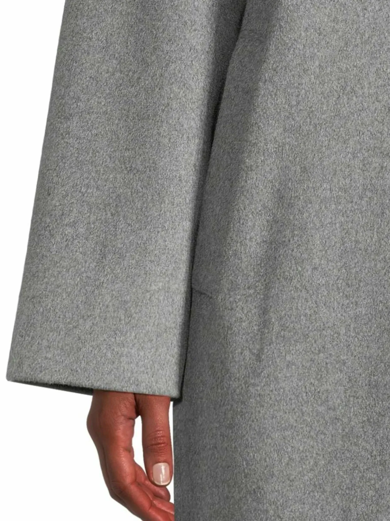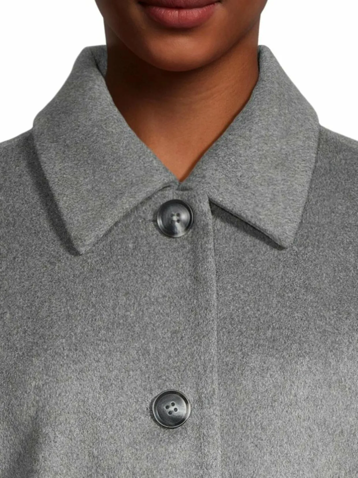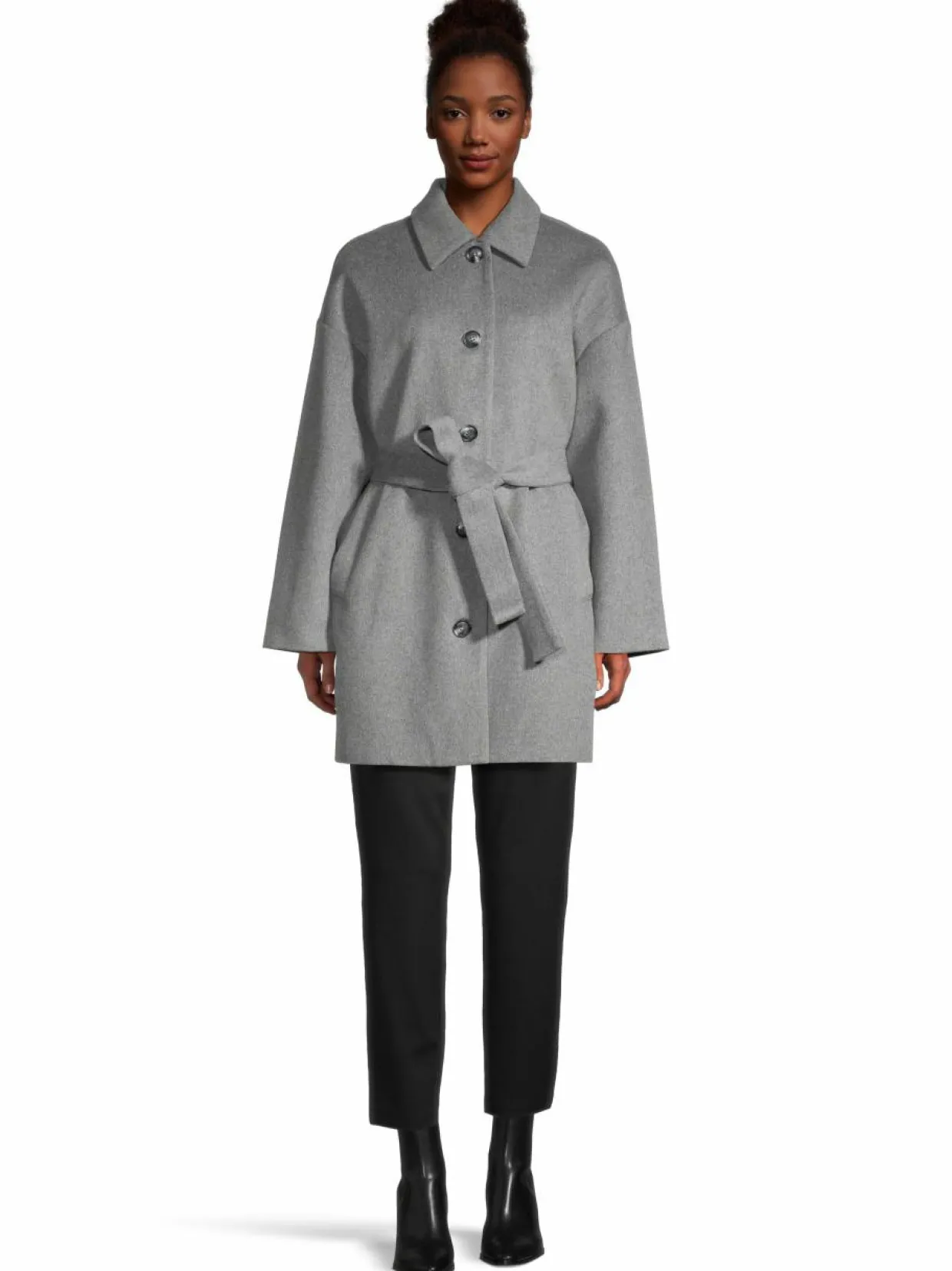 Tämä villakangastakki huokuu ajatonta eleganssia. Kaksirivinen nappikiinnitys ja vyöllä korostettu vyötärö tekevät tästä takista elegantin valinnan viileämpiin päiviin. Laadukkaasta villakankaasta valmistettu takki tarjoaa miellyttävän lämmön ja kestävyyden, pitäen samalla tyylin huoliteltuna.