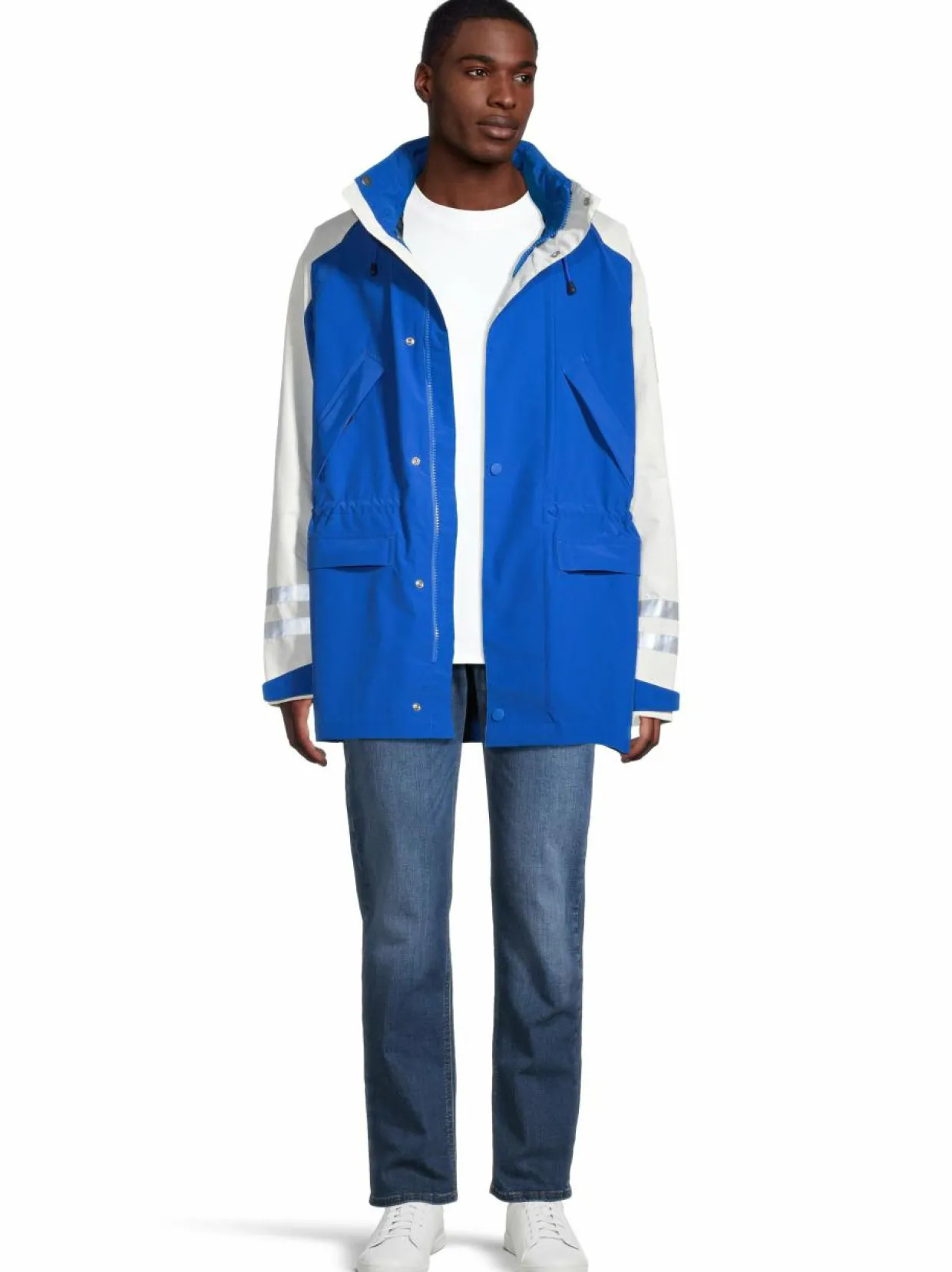GANT vaatemerkin keskipitkä Sailor-takki on valmistettu kierrätetystä polyamidista. Takissa on kaulukseen piilotettava, säädettävä huppu, vetoketju- ja painonappikiinnitys sekä tilavat taskut. Takin vyötärö on sisäpuolelta säädettävä. Mukavat raglan-hihat lisäävät käyttömukavuutta ja heijastavat yksityiskohdat turvallisuutta hämärässä liikkuessa. Sailor-takki veden- ja tuulenpitävä. Se sopii erinomaisesti kevään ja syksyn koleisiin päiviin.