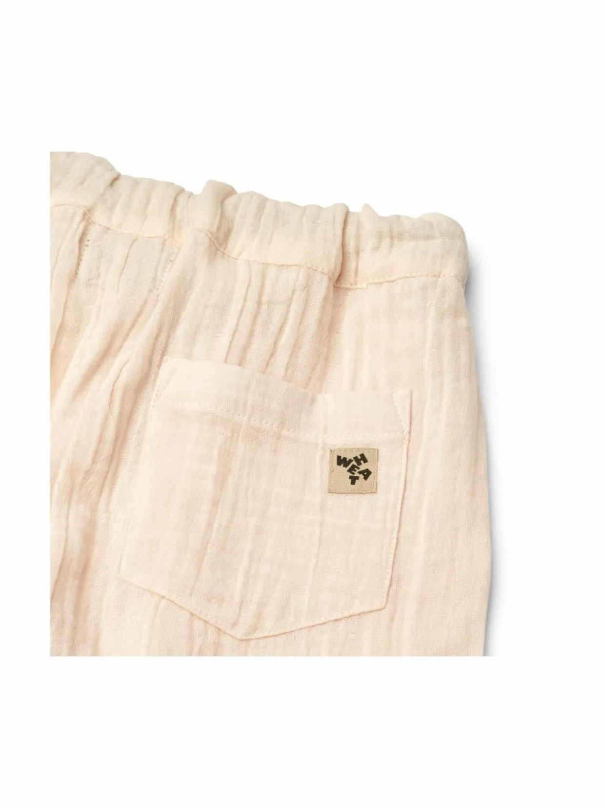Erityisen pehmeät housut lapsille Wheat merkiltä. Sasha-housut on valmistettu luomupuuvillasta mukavan rennolla istuvuudella. Housujen lahje on leveä ja suora. Niissä on myös taskut ja säädettävä joustovyötärö. Helposti yhdistettävä ja mukava vaatekappale.