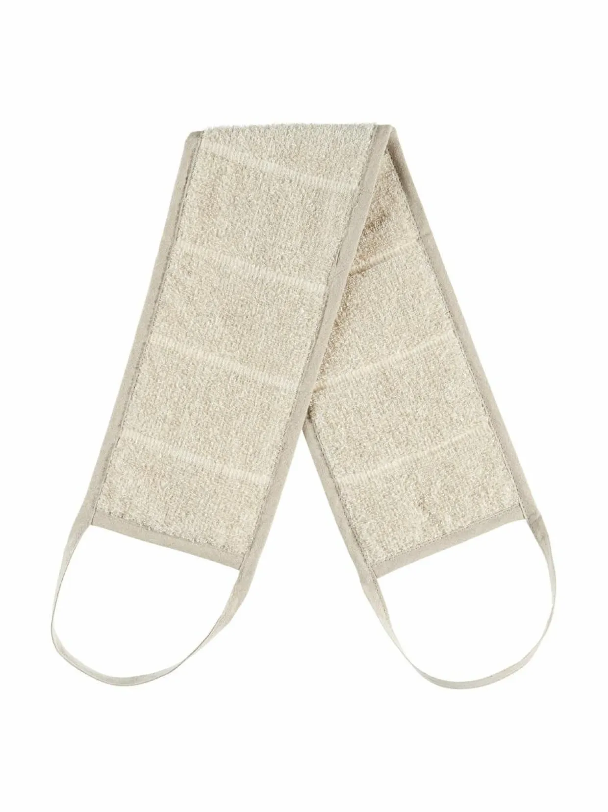 Pellavasekoitteesta valmistetussa selänpesimessä on hiukan karhea pinta, joka sopii hyvin ihon kuorintaan ja kuivahierontaan.