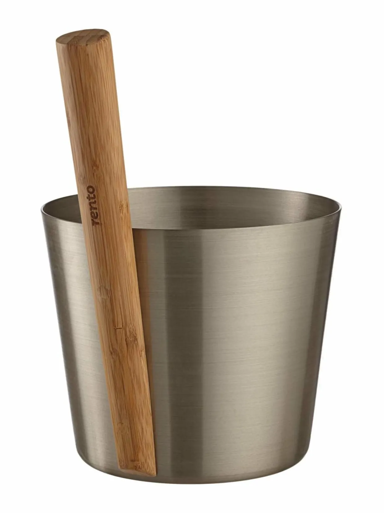Tyylikäs kiulu on alumiinia ja kädensija on bambua. Kiulun korkeus on 20,5 cm ja halkaisija 23 cm.