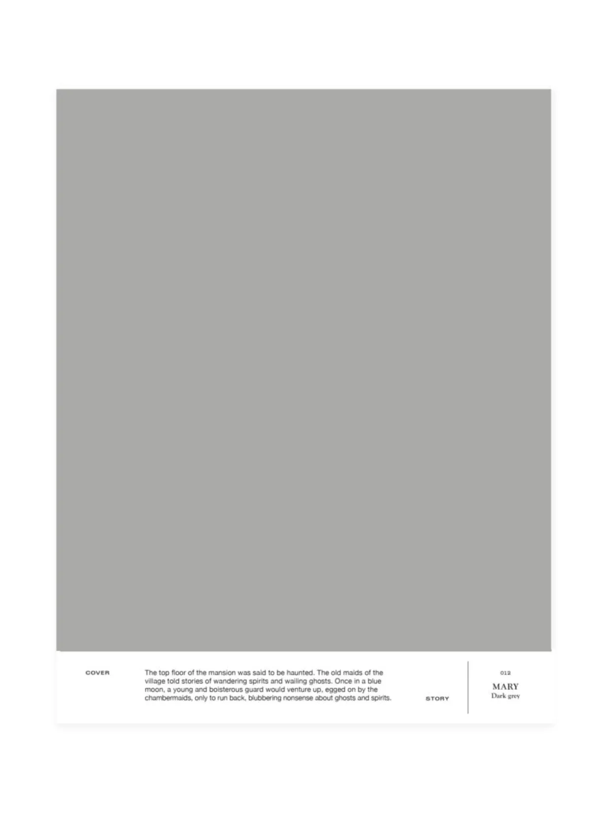012 MARY on kivimäinen harmaa, luonnollinen ja neutraali sävy, joka sopii kaikkiin väreihin ja luo sisustuksesta eheän kokonaisuuden. A4-kokoinen tarrataustainen värimalli on maalattu aidolla täyshimmeällä Cover Story -maalilla, joten voit olla varma, että sävy on sama kuin varsinaisessa maalissa. Mallitarran voi liimata helposti suoraan maalattavalle pinnalle ja katsoa, miltä sävy näyttää erilaisissa valaistuksissa – valon laatu ja määrä vaikuttavat merkittävästi siihen, miten havaitsemme värin.