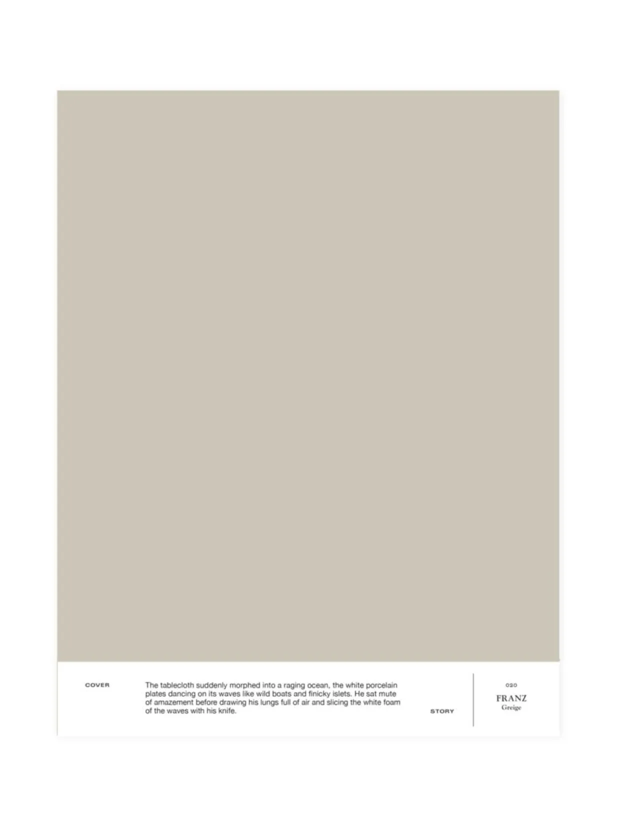 020 FRANZ on vaalea harmaan beige, joka on luonnollisen sisustuksen luottotausta. FRANZ istuu niin sisalin, rottingin kuin vaaleiden puusävyjenkin pariksi. A4-kokoinen ja tarrataustainen värimalli on maalattu aidolla täyshimmeällä Cover Story -maalilla, joten voit olla varma, että sävy on sama kuin varsinaisessa maalissa. Mallitarran voi liimata helposti suoraan maalattavalle pinnalle ja katsoa, miltä sävy näyttää erilaisissa valaistuksissa, sillä valon laatu ja määrä vaikuttavat merkittävästi siihen, miten havaitsemme värin.
