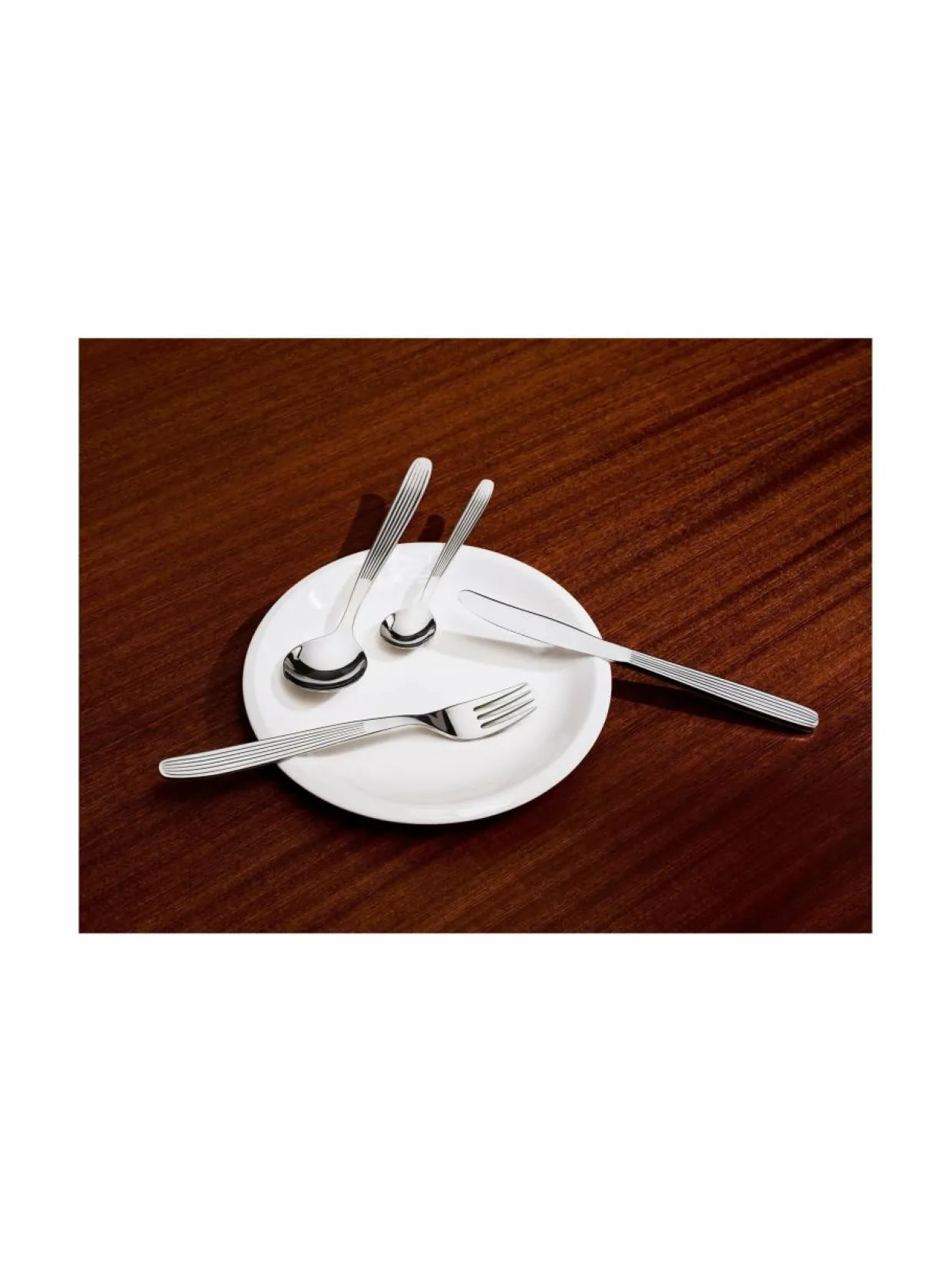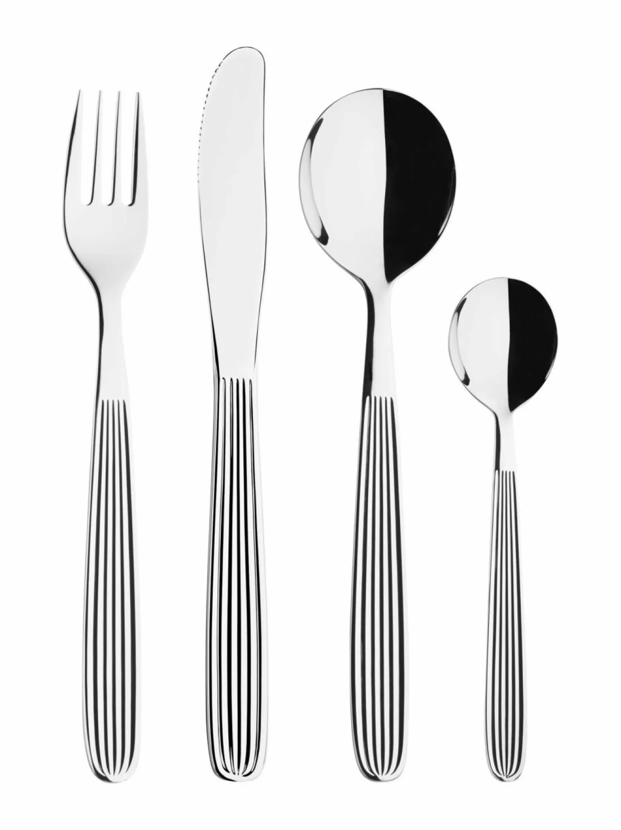 Scandic-aterinpakkaus sisältää 6 ruokahaarukkaa, 6 ruokaveistä, 6 ruokalusikkaa ja 6 kahvilusikkaa. Varsien uritetun kuvioinnin ansiosta ruokailuvälineitä on helppo käsitellä ja ne pysyvät tukevasti kädessä. Materiaalina ruostumaton teräs korostaa linjakasta muotoilua