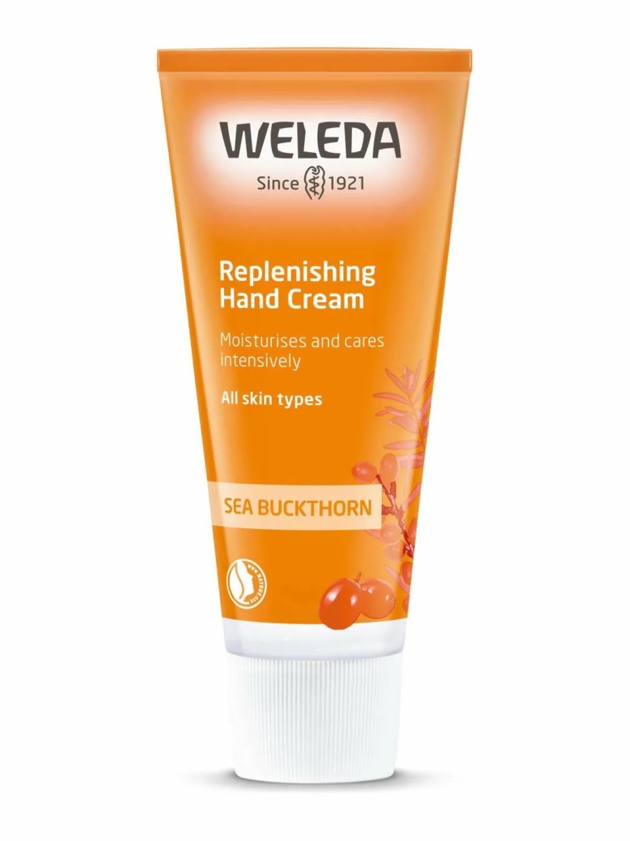Weledan kosteuttava Sea Buckthorn -käsivoide sisältää luomutyrniöljyä sekä seesamiöljyä. Hoitava, päivittäiseen käyttöön sopiva voide hellii kuivia käsiä ja imeytyy nopeasti. Sitruksinen tuoksu on miellyttävän raikas.