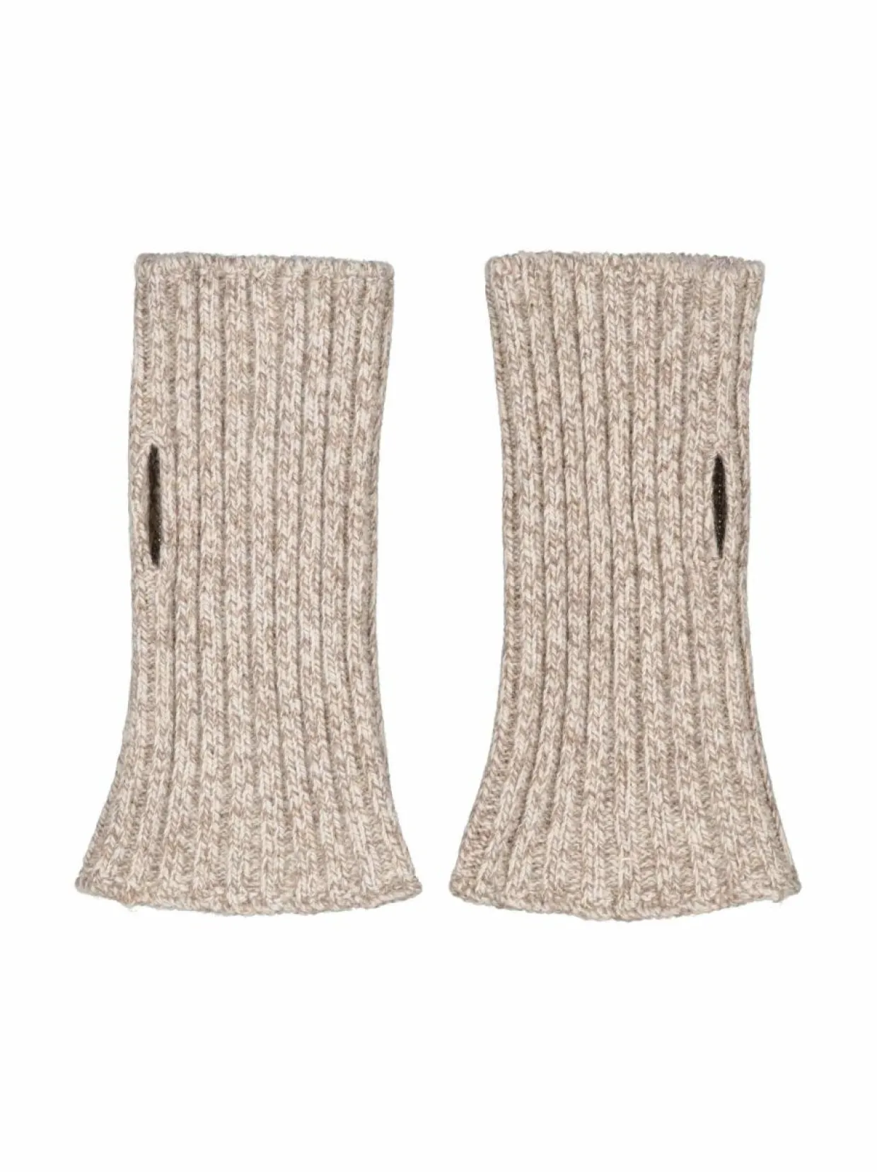 Pehmeän tuntuiset ranteensuojat ribatulla tekstuurilla. Yksityiskohtana kätevät peukalonreiät. Materiaalina on käytetty miellyttävän tuntuista merinovillan ja kashmirin yhdistelmää. Valikoimasta löydät myös yhteensopivan huivin sekä neulepipon.