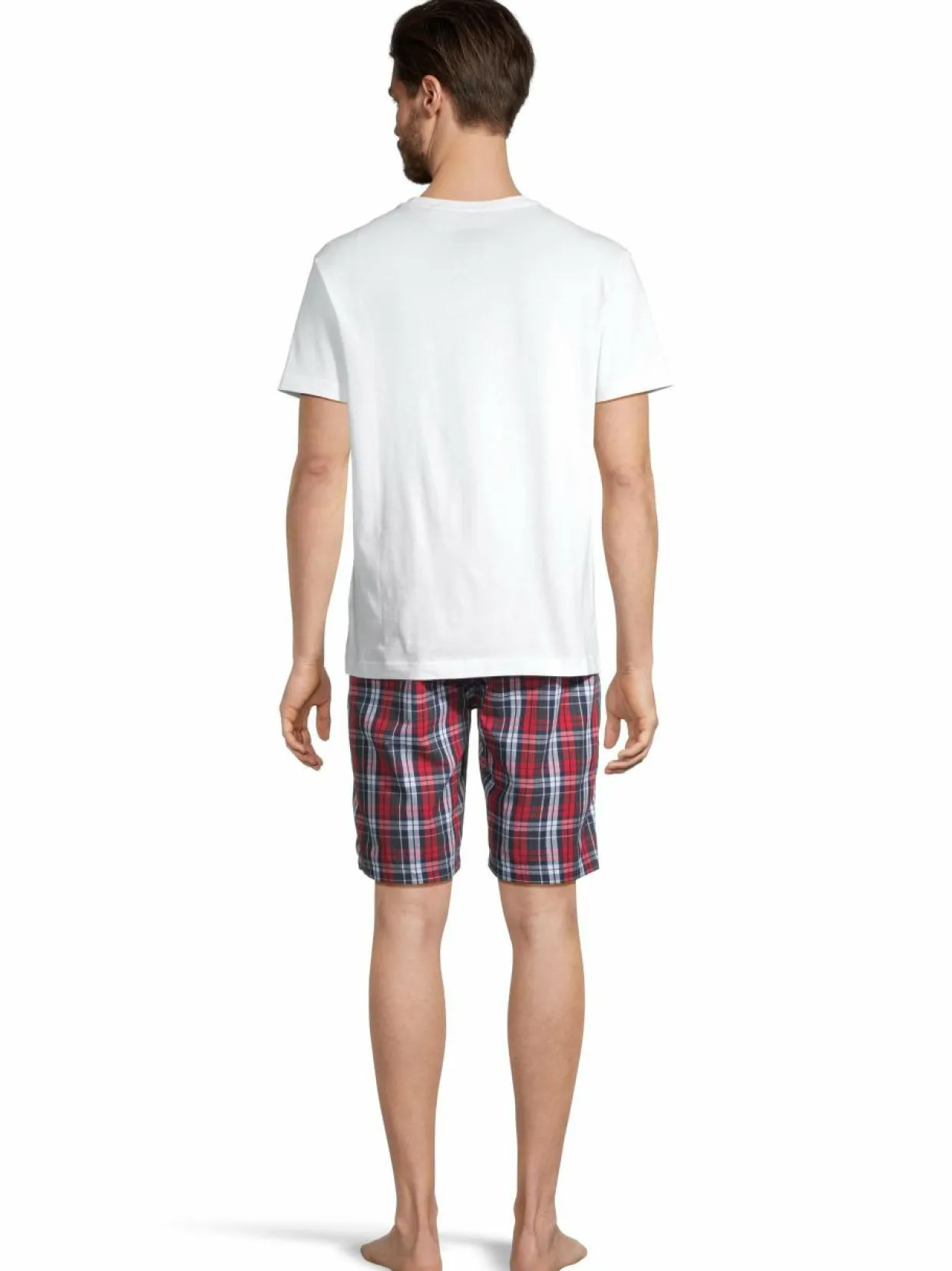 Cap Hornin Sebastian on mukava pyjamasetti luomupuuvillasta. Settiin kuuluvat viileät popliinishortsit ja trikoopaita. Shortsien vyötärö on säädettävissä nauhoilla. Lisäksi shortseissa on kätevät sivutaskut. T-paitaa täydentää ruudullinen rintatasku.