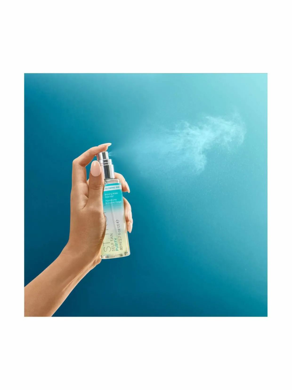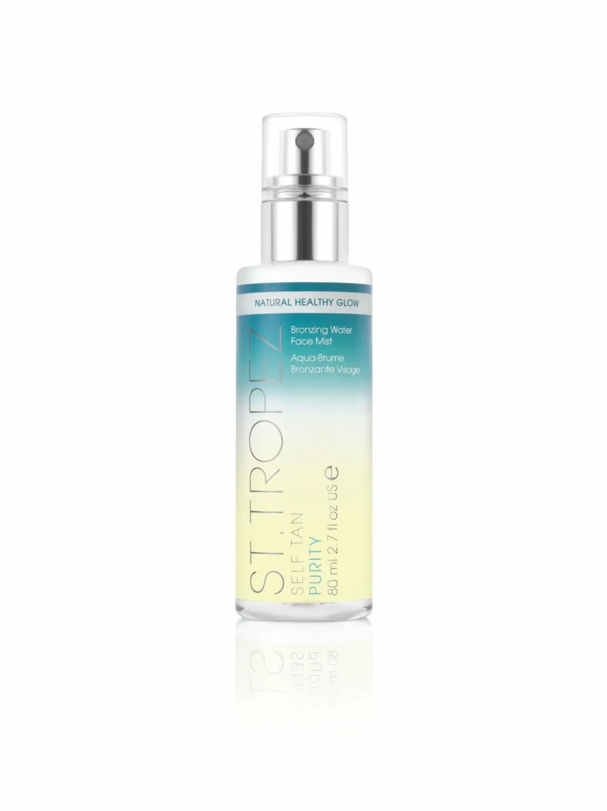 St.Tropez Self Tan Purity Bronzing Water Face Mist on päivettävä kasvosuihke, jonka tarkoituksena on kiinnittää ja pidentää kasvojen ihon rusketuksen kestoa sekä suojata ihoa ilmansaasteilta. Helppokäyttöiseen tuotteeseen on lisäksi sisällytetty hyaluronihappoa, jonka ansiosta kasvojen iho säilyy nuorekkaan kauniina. Kirkas nestemäinen koostumus ei sisällä välitöntä sävyä. Tuote antaa luonnollisen rusketuksen 4-8 tunnissa, joka kestää monta päivää.