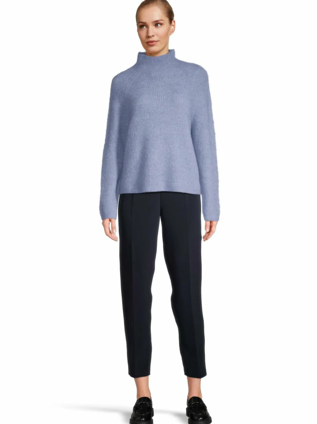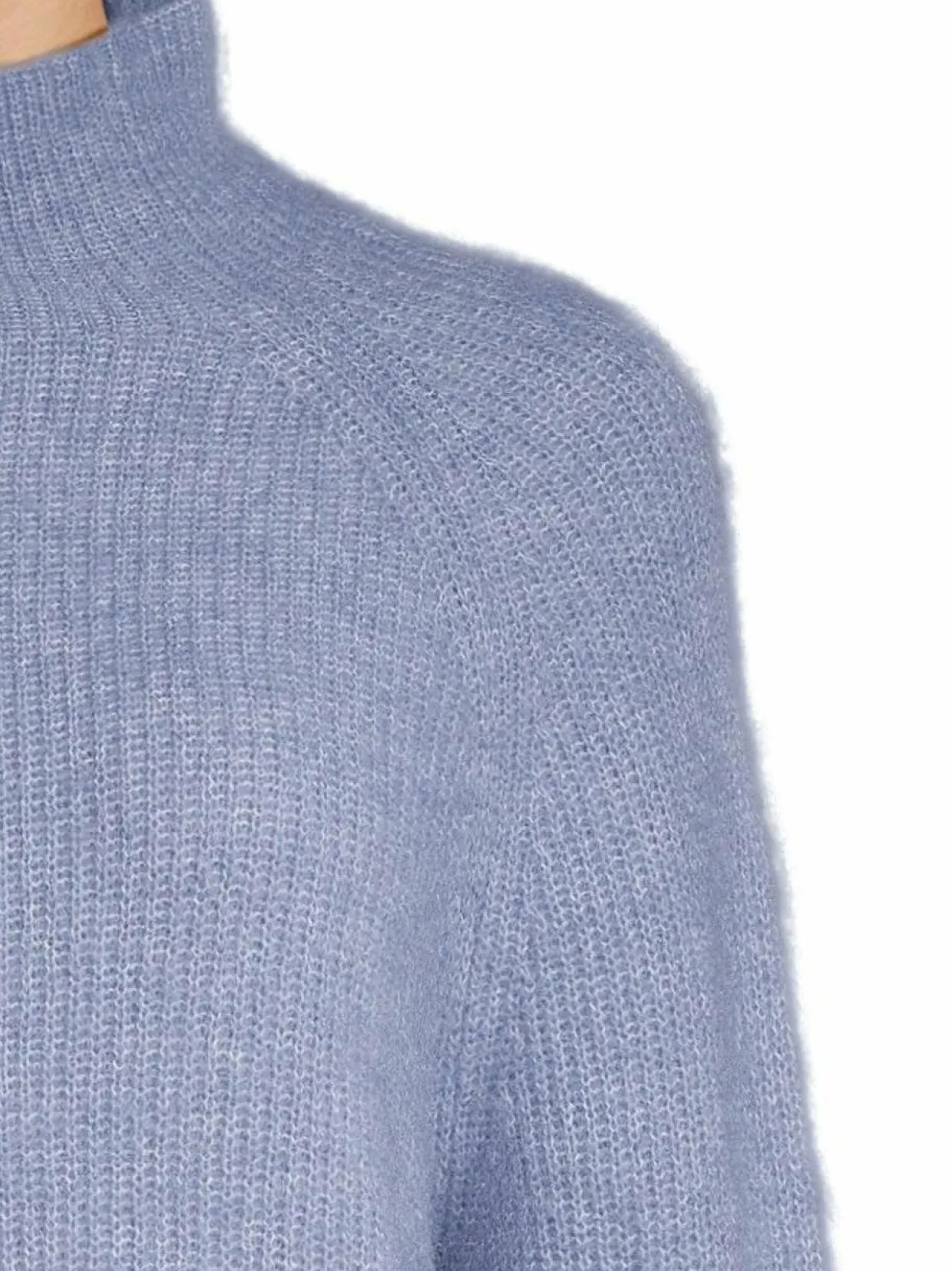 Tämä neule on suunniteltu lämmittämään ja tarjoamaan mukavuutta. Neuleessa on korkea pääntie ja pitkät hihat, jotka luovat ajattoman ja käytännöllisen ilmeen. Mohairin ja villan sekoite antaa neuleelle ilmavan ja lämpimän tunnun. Materiaali on pehmeää ja miellyttävää ihoa vasten.