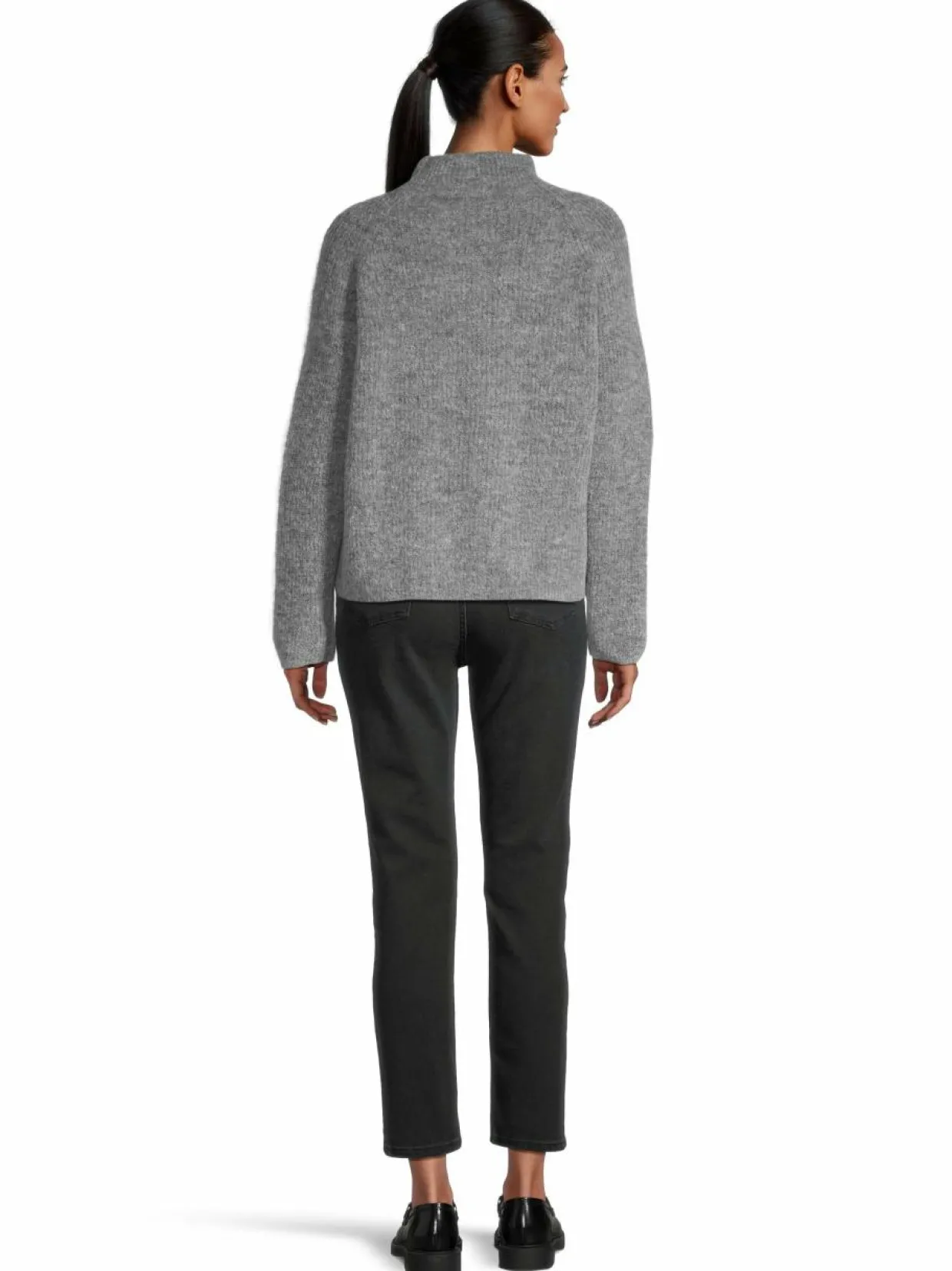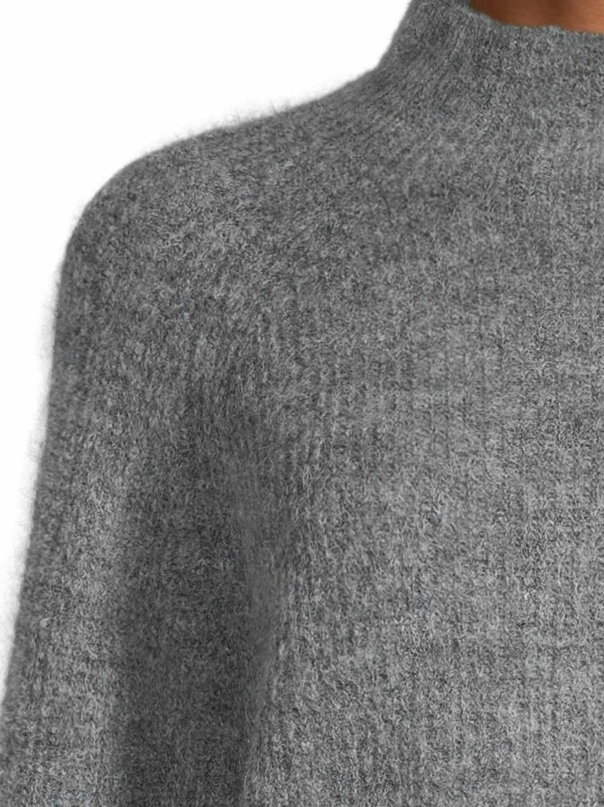 Tämä neule on suunniteltu lämmittämään ja tarjoamaan mukavuutta. Neuleessa on korkea pääntie ja pitkät hihat, jotka luovat ajattoman ja käytännöllisen ilmeen. Mohairin ja villan sekoite antaa neuleelle ilmavan ja lämpimän tunnun. Materiaali on pehmeää ja miellyttävää ihoa vasten.