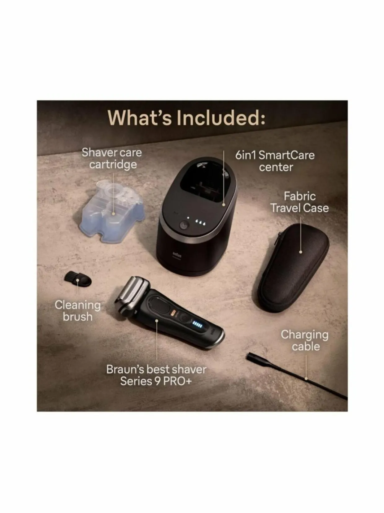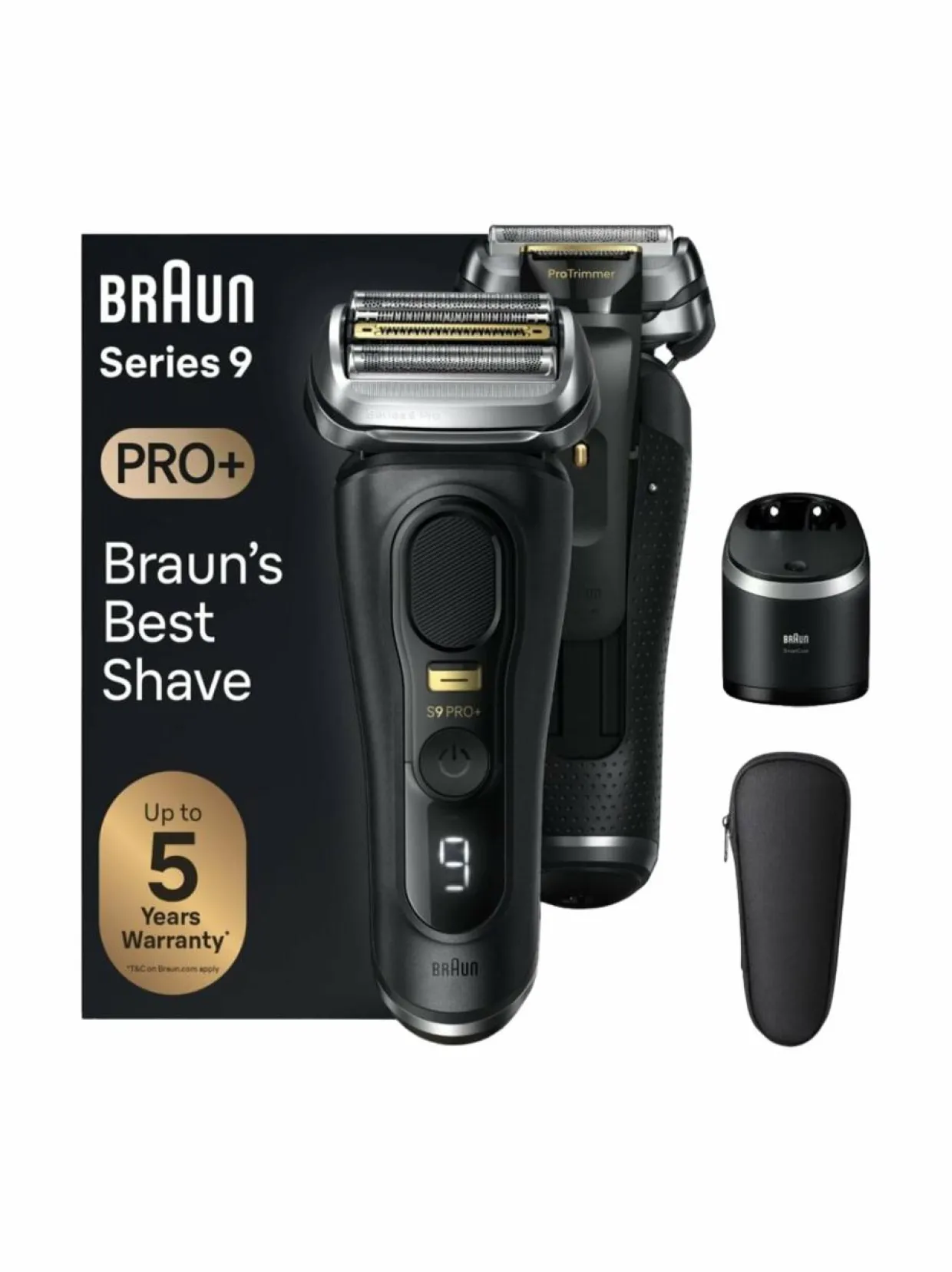 Hanki Braun Series 9 PRO+ -parranajokone, joka määrittelee parranajon uudelleen ja tarjoaa äärimmäisen tarkan ja iholle miellyttävän ajon. Series 9 PRO+ -parranajokoneen 5 erityistä ProShave-osaa, kuten ProLift-terä, tarjoavat tehokkaan ja hellävaraisen ajon jokaisella vedolla, olipa kyseessä 1, 3 tai 7 päivän parta. ProTrimmer-tarkkuustrimmerin terä on vahvistettu kirurgitason ruostumattomalla teräksellä ja se leikkaa täydellisesti myös pisimmät karvat, pulisongit ja viikset. Valmistettu Saksassa ja tehty kestämäänvuosia. Tehokas litiumioniakku 60 minuutin käyttöajalla. Käytä märkänä tai kuivana. Ensiluokkainen perustuote arkeen: 6-in-1 SmartCare -asemalla parranajokone on kuin uusi joka päivä yhdellä painalluksella.