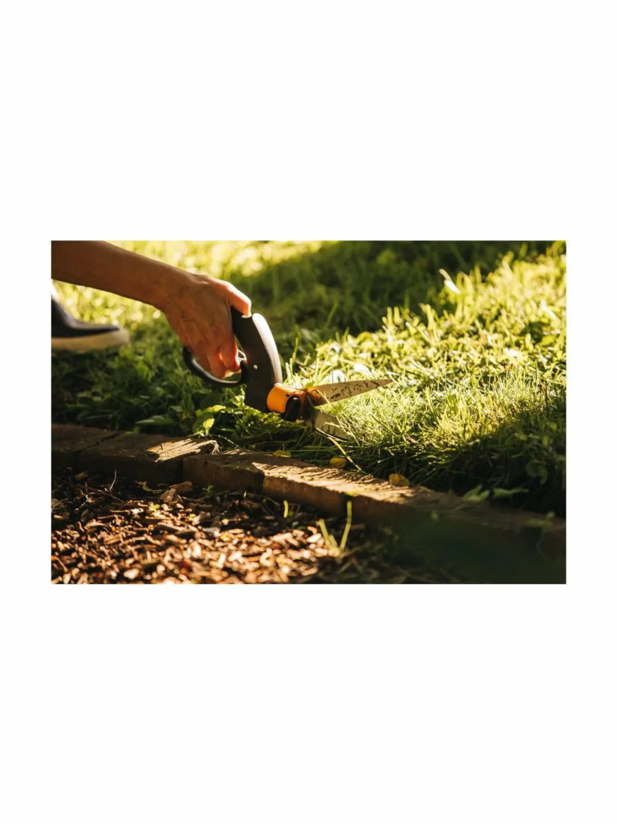 Fiskars-ruohosaksissa on nerokas Servo-System™ -mekanismi, joka estää terien jumiutumisen ja takaa keskeytymättömän, tehokkaan leikkaamisen. Ergonomiset ja kevyet sakset ovat mukavat käytössä ja aina 360 asteeseen saakka. Säädettävällä leikkuupäällä tavoittaa helposti hankalatkin paikat. Terät on valmistettu karkaistusta ruostumattomasta teräksestä ja kahvat lasikuituvahvisteisesta polyamidista.