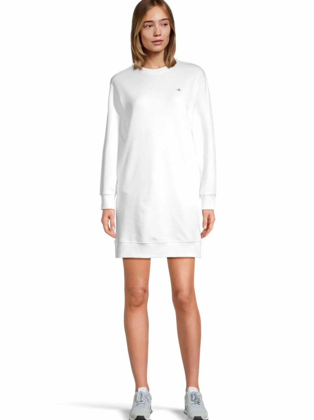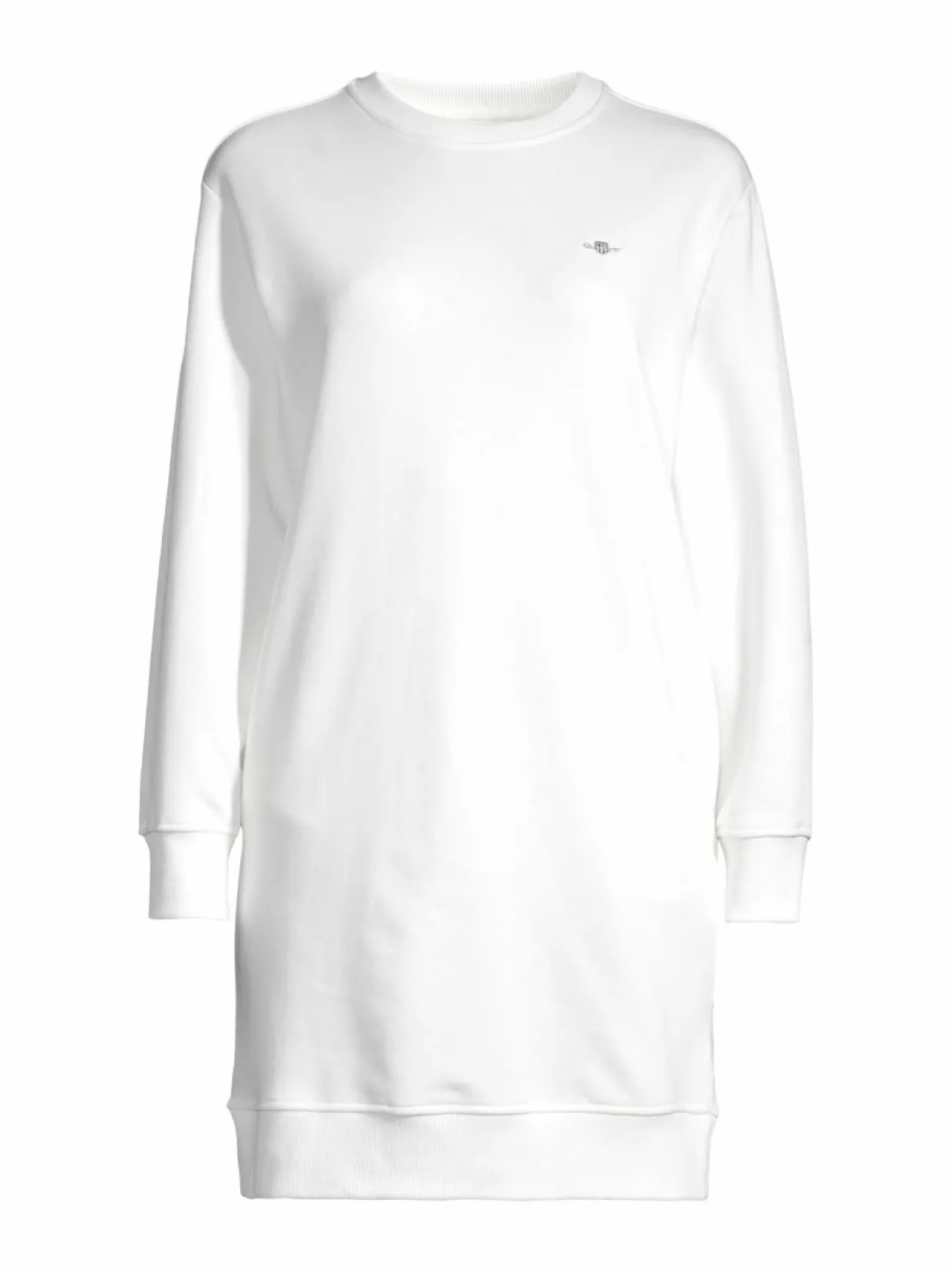 Gantin rento mekko on valmistettu pehmeästä puuvillasekoitteesta, joka tuntuu miellyttävältä ihoa vasten ja hengittää hyvin. Resorit korostavat mekon muotoja ja luovat miellyttävän istuvuuden. Pieni vaakunakuvio rinnassa viimeistelee kokonaisuuden.