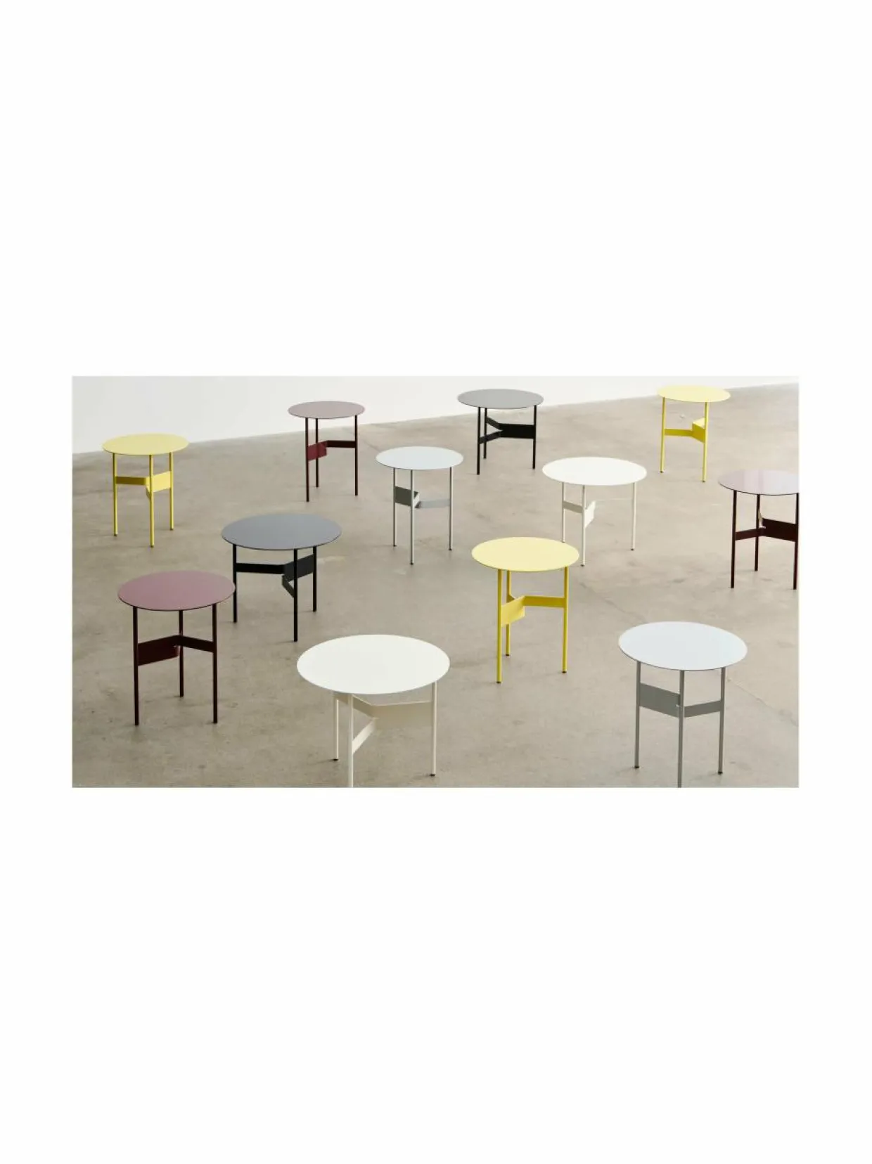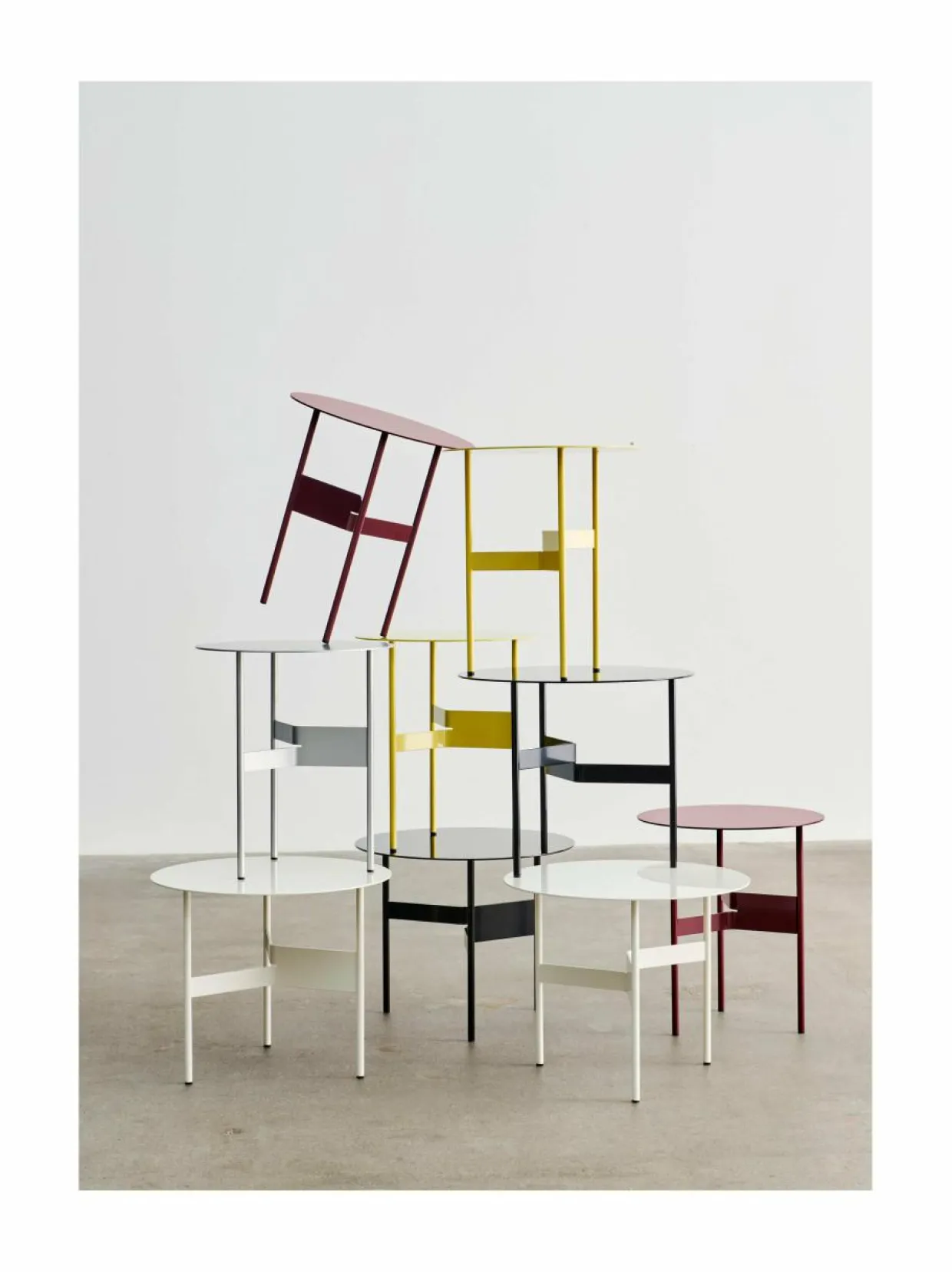 Jauhemaalatusta teräksestä valmistetun Shim-kahvipöydän on suunnitellut Haylle Jonas Trampedach. Monipuolisessa pöydässä on kolme jalkaa ja uniikisti leikattu ja taitettu rakenne pöytätason alla. Ilmeeltään graafinen sohvapöytä sopii sekä kotiin että myös esim. yrityksen tilaan. Pöytää on saatavilla erilaisina variantteina ja se kuuluu Shim-tuotesarjaan.