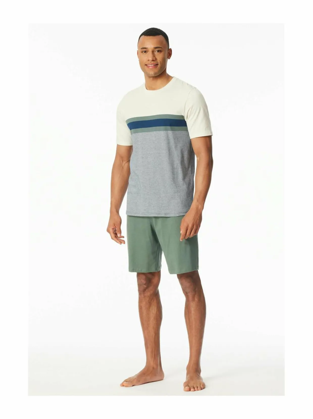 Schiesserin shortsipyjama on täydellinen yhdistelmä mukavuutta ja raikasta tyyliä. 100 % puuvillasta valmistettu setti tuntuu pehmeältä ihoa vasten ja hengittää hyvin, tarjoten miellyttävän olon kaikissa lämpötiloissa. T-paidan klassinen raitayksityiskohta ja shortsien yksinkertainen malli tekevät tästä pyjamasta ajattoman ja rennon valinnan.
