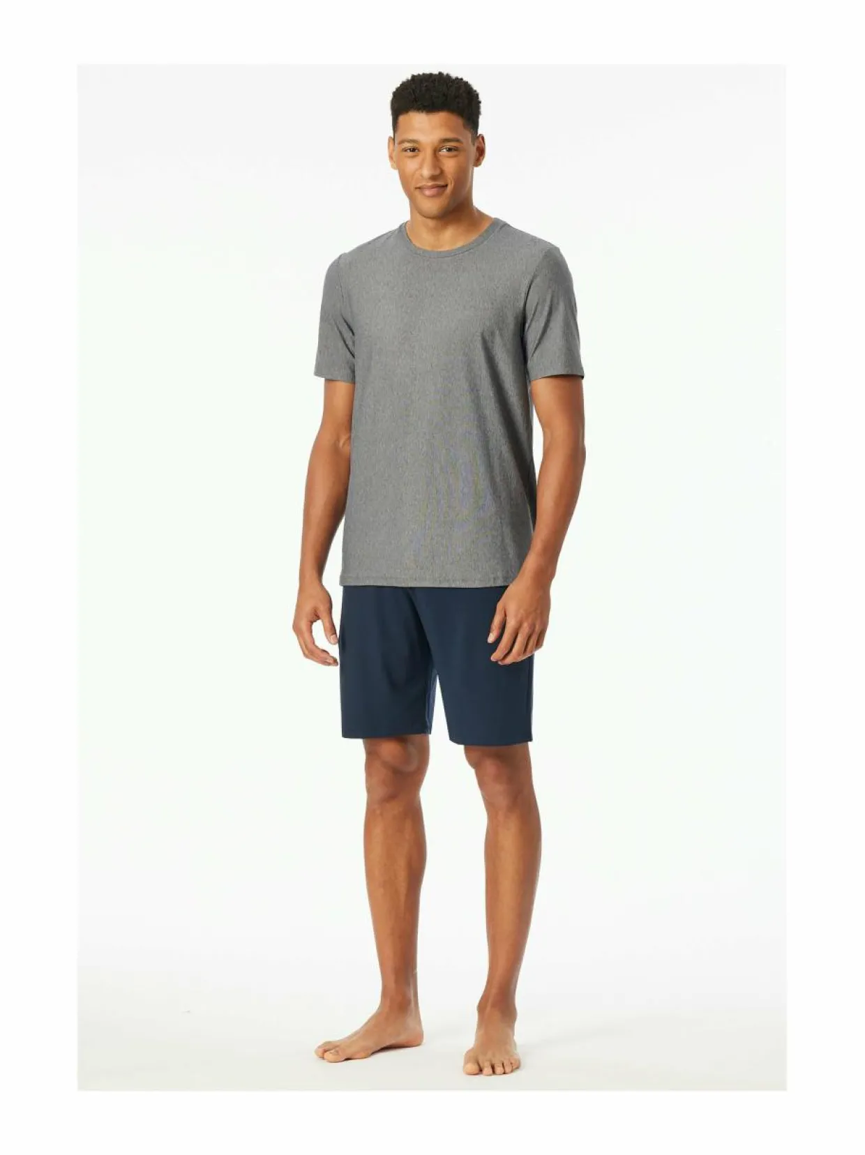 Schiesserin shortsipyjama tarjoaa tyyliä ja mukavuutta. Pyöreäkauluksinen paita ja joustovyötäröiset shortsit muodostavat rennon kokonaisuuden, joka tuntuu miellyttävältä päällä. Pehmeä ja joustava puuvilla-modaalikangas mukailee liikkeitä ja tekee tästä pyjamasta täydellisen valinnan niin levollisiin öihin kuin mukaviin kotihetkiin.