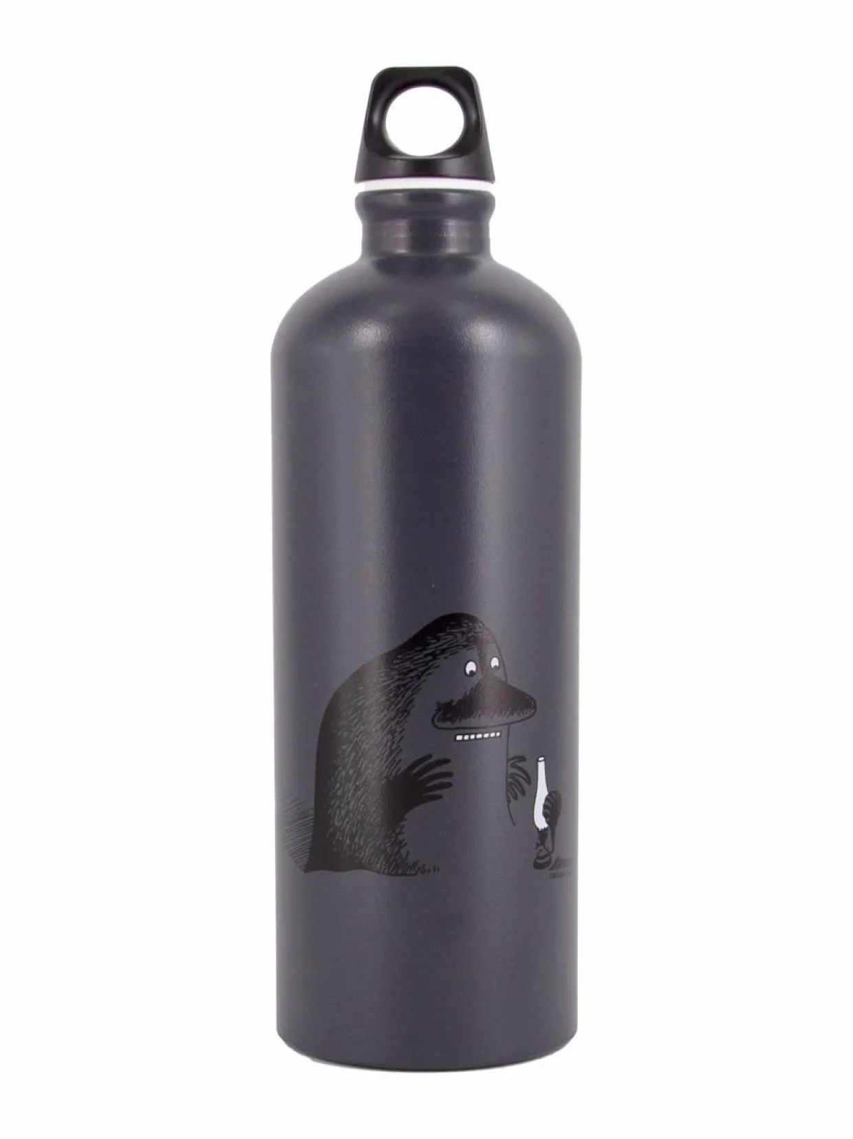 Sveitsissä valmistettu juomapullo on kevyttä ja kestävää alumiinia. Vuotamaton korkki kestää myös hiilihapolliset juomat. Sisäpuolen pinnoite kestää hedelmähappoja ja on mauton sekä BPA-vapaa. Käytännöllistä kierrekorkkia voi kantaa helposti yhdellä sormella. Pulloa somistaa tyylikäs Muumi-kuvitus.