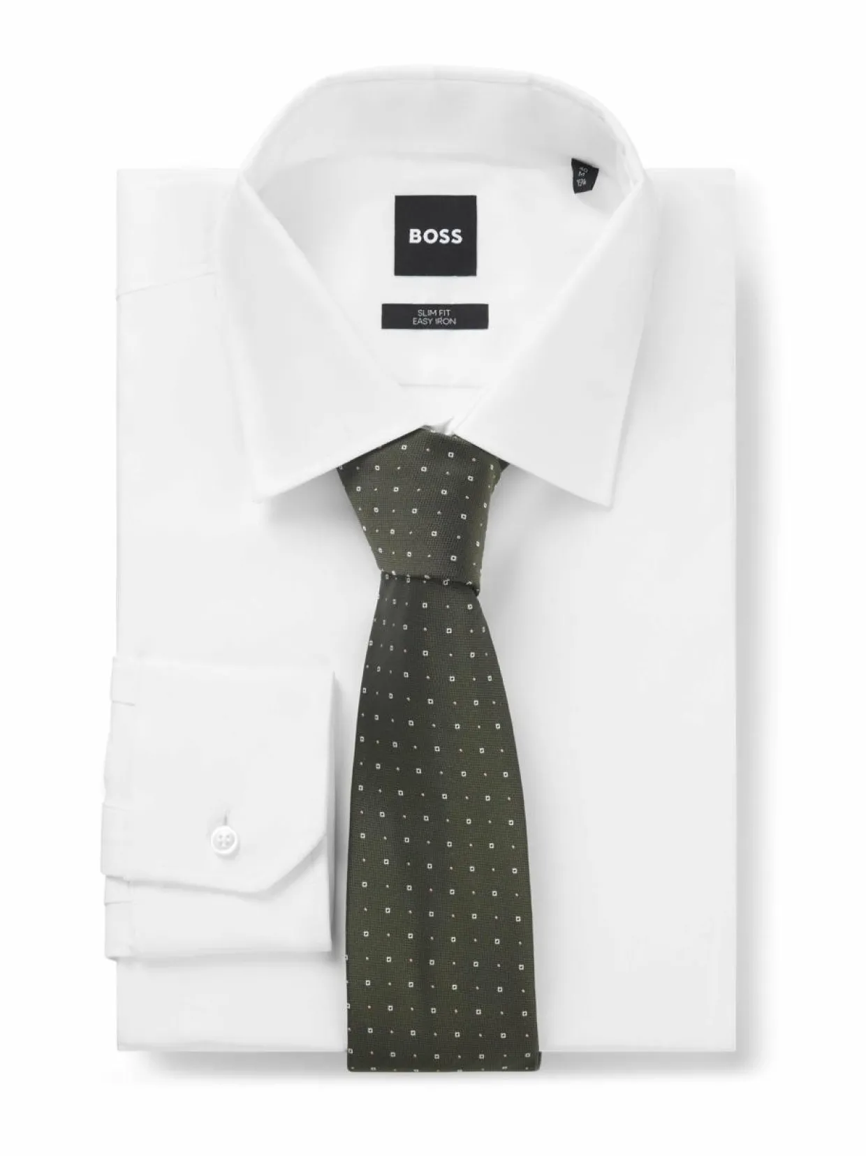 Tuotenumero173117246 Materiaali56 % silkki, 44 % polyesteri Hoito-ohjeetKemiallinen pesu Väri314 MEDIUM GREEN KokoOne size Avainsanatsolmio, kravatti, silkkisolmio, miesten asusteet, BOSS