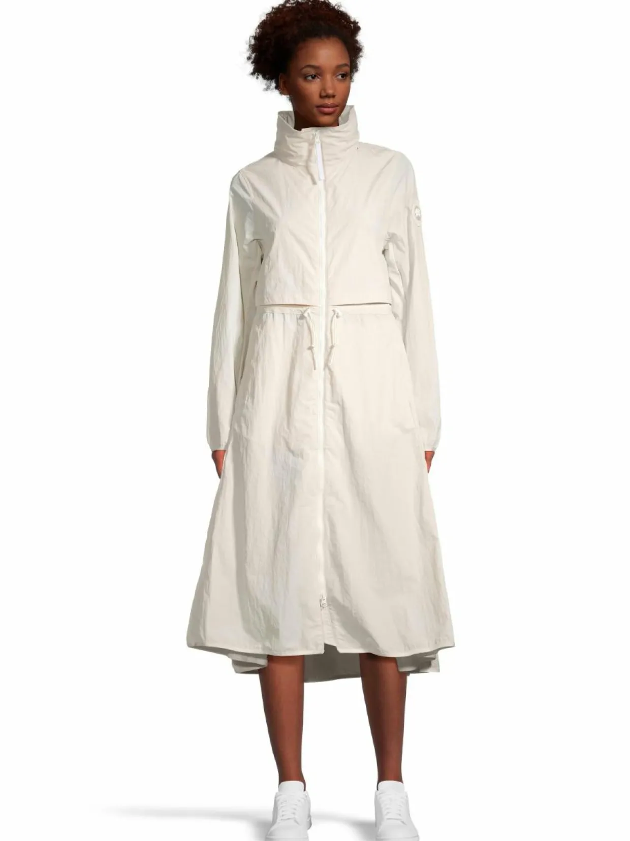 Kevyt ja naisellinen välikausitakki, joka on valmistettu tuulen- ja vedenpitävästä AcclimaLuxe -kankaasta pitäen olosi mukavana kaikissa sääolosuhteissa. Materiaali on hengittävä, kulutusta kestävää ja helppohoitoinen. Takissa on pystykaulus, huppu, vetoketjulliset etutaskut ja yksi sisätasku. Huppu ja vyötärö ovat kiristysnyörillä säädettäviä. Kiinnitys kaksisuuntaisella vetoketjulla.