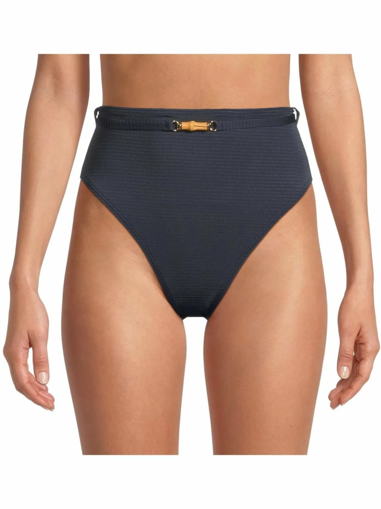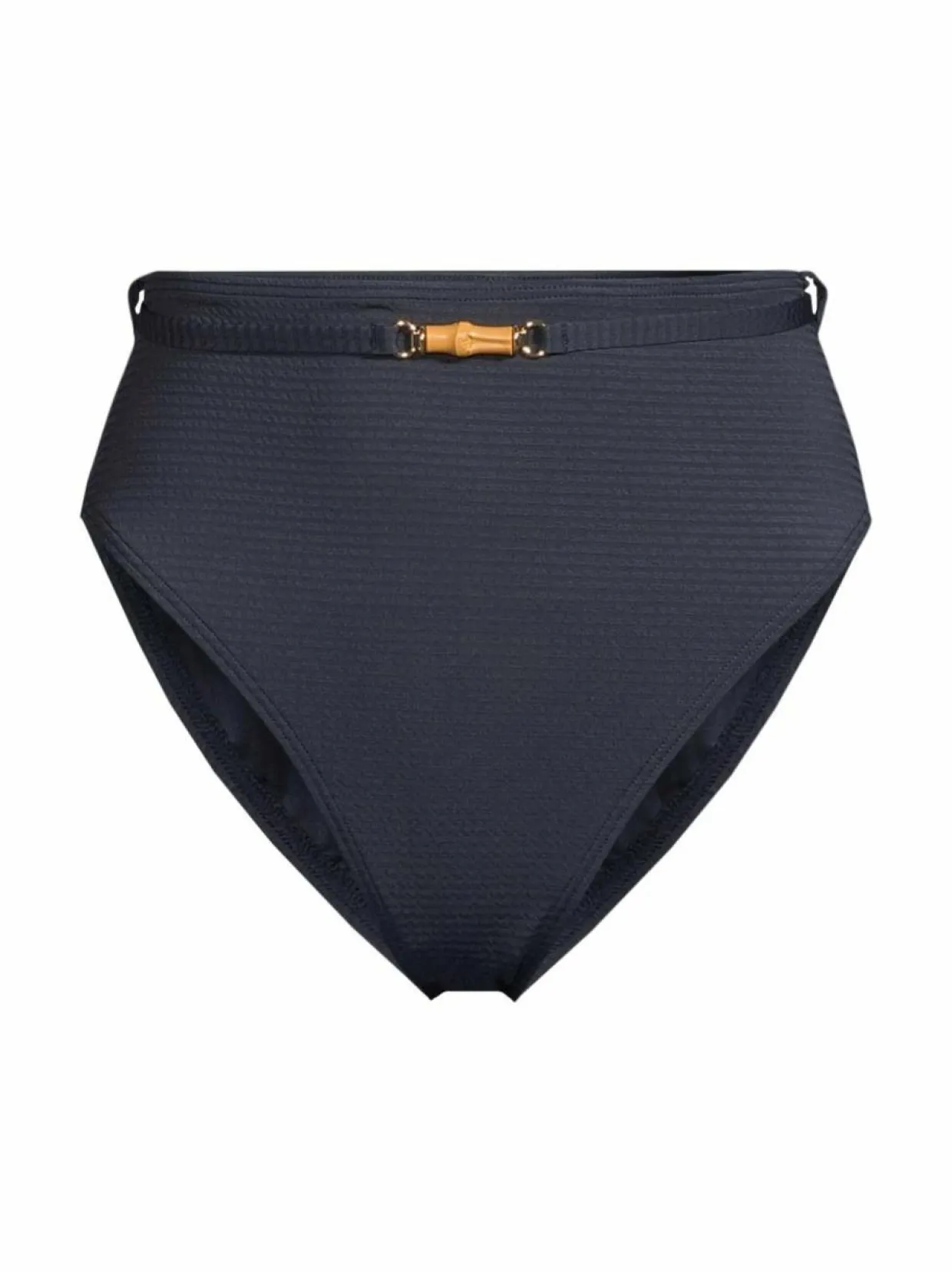 Malinan tekstuurillinen Sirine High Rise -bikinialaosa on valmistettu kierrätetystä polyesteristä ja elastaanista. Se on varustettu korkealla vyötäröllä ja siinä on tyylikäs vyö, jossa on edessä puinen ja takana metallinen yksityiskohta. Alusosa on mukava ja istuva.