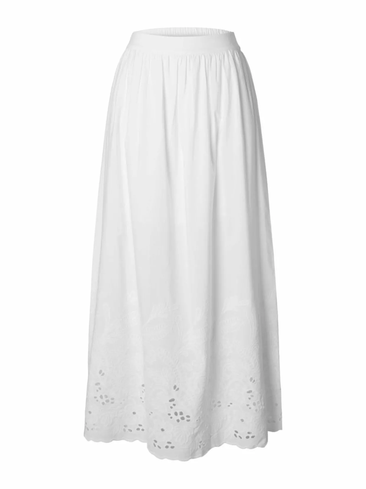 Selectedin SlfDahlia-hame tuo kesäistä keveyttä ja ajattoman tyylikästä ilmettä asuusi. Hame on valmistettu puuvillan ja lyocellin sekoitteesta, mikä tekee siitä miellyttävän pehmeän ja hengittävän. Helmassa on kaunis brodeerauskuviointi, joka antaa hameelle herkän ja romanttisen ilmeen.