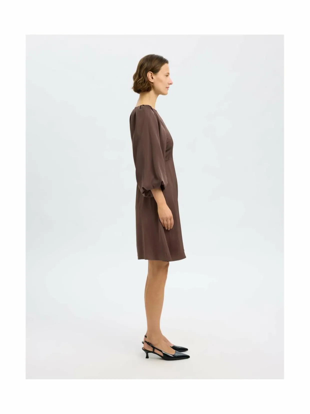 Materiaali100 % viskoosi Hoito-ohjeetHienopesu 30 °C ValmistusmaaKiina VäriCHESTNUT AvainsanatSELECTED, mekko, lyhyt mekko, arkimekko, juhlamekko