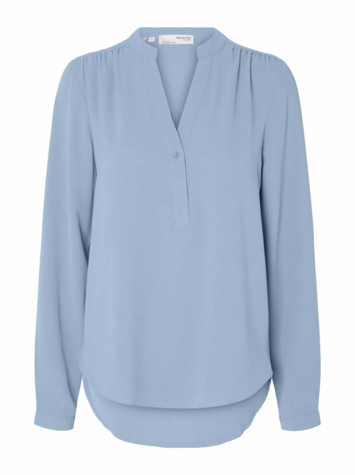 Materiaali100 % polyesteri Hoito-ohjeetHienopesu 40 asteessa VäriCASHMERE BLUE Avainsanatpusero, kierrätys, kevyt paita, arkipaita, SELECTED