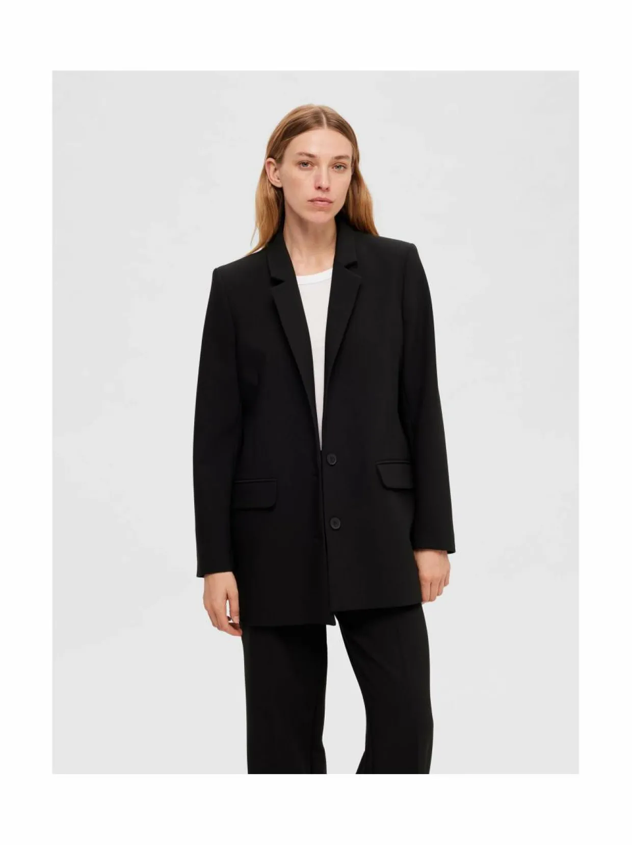 Selected tuotemerkin SlfRita-bleiseri tarjoaa mukavuutta päivittäiseen käyttöön. Bleiserissä on yksirivinen napitus, joka antaa bleiserille hillityn ilmeen. Elegantilla lovikauluksella ja läppätaskuilla varustettu bleiseri on sekä trendikäs että klassisen ajaton. Olipa kyseessä sitten virallinen kokous, illallinen tai viikonloppuretki kaupunkiin, tämä bleiseri on varma valinta, joka saa sinut näyttämään ammattimaiselta. Pehmeään materiaaliyhdistelmään on lisätty mukavasti joustoa.