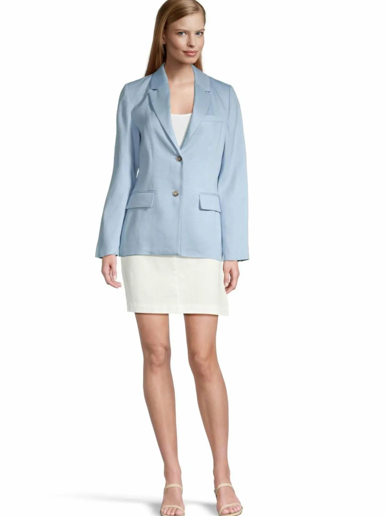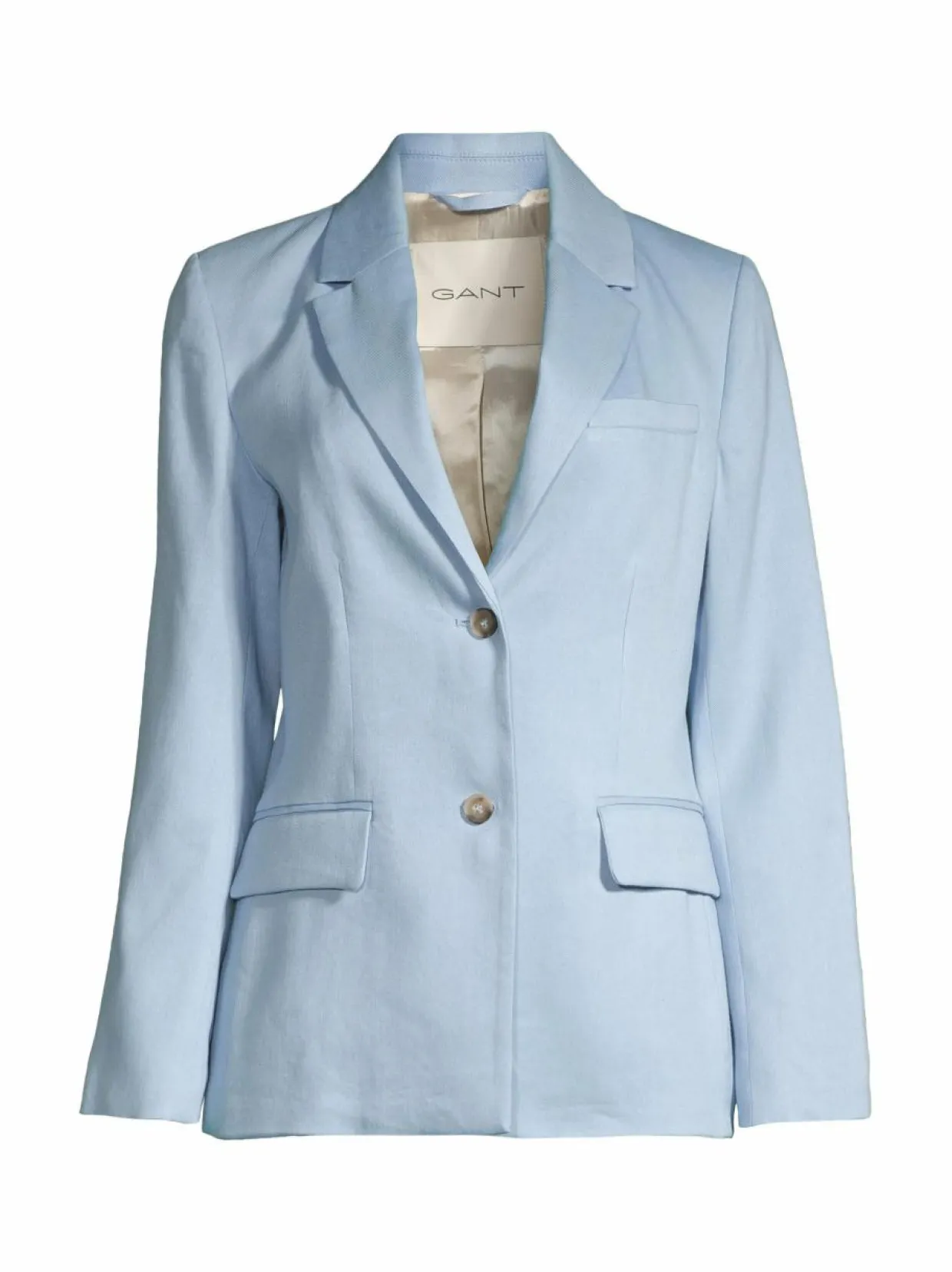 Kesäinen bleiseri GANT vaatemerkiltä. Tämä yksirivinen irtotakki on suunniteltu tyköistuvaan istuvuuteen ja valmistettu hengittävästä pellava-viskoosista. Ajaton bleiseri sopii täydentämään niin arkista kuin juhlavampaa asukokonaisuutta.