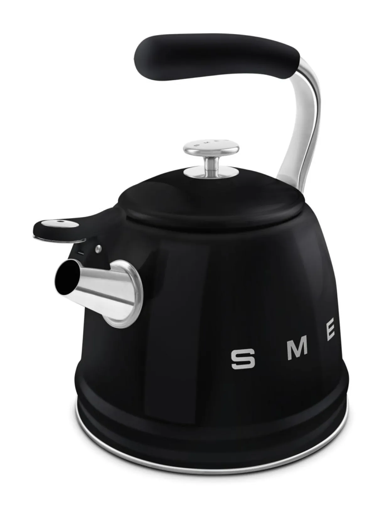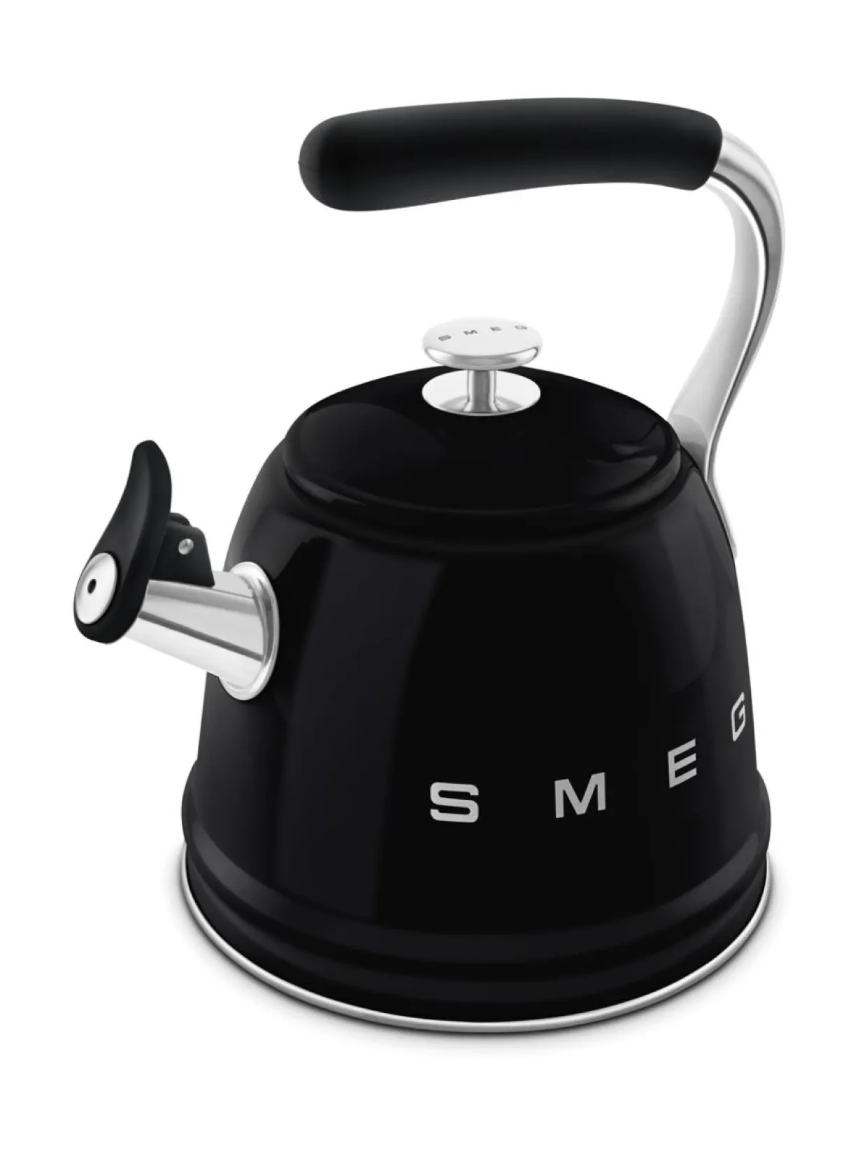 Smeg WKF01BL on enemmän kuin pelkkä vesipannu, se on keittiön katseenvangitsija ja arjen ylellinen kumppani. Kiiltävän musta emalipinta ja kromiset yksityiskohdat luovat harmonisen kokonaisuuden, joka hurmaa sekä muotoilun ystävät että laatutietoiset käyttäjät. 50-luvun tunnelmaa henkivän höyrypillin ansiosta tiedät aina, milloin vesi on valmista. Kun vesi kiehuu, pannu viheltää pehmeästi ilmoittaen olevansa valmis, juuri kuten klassikon kuuluukin.