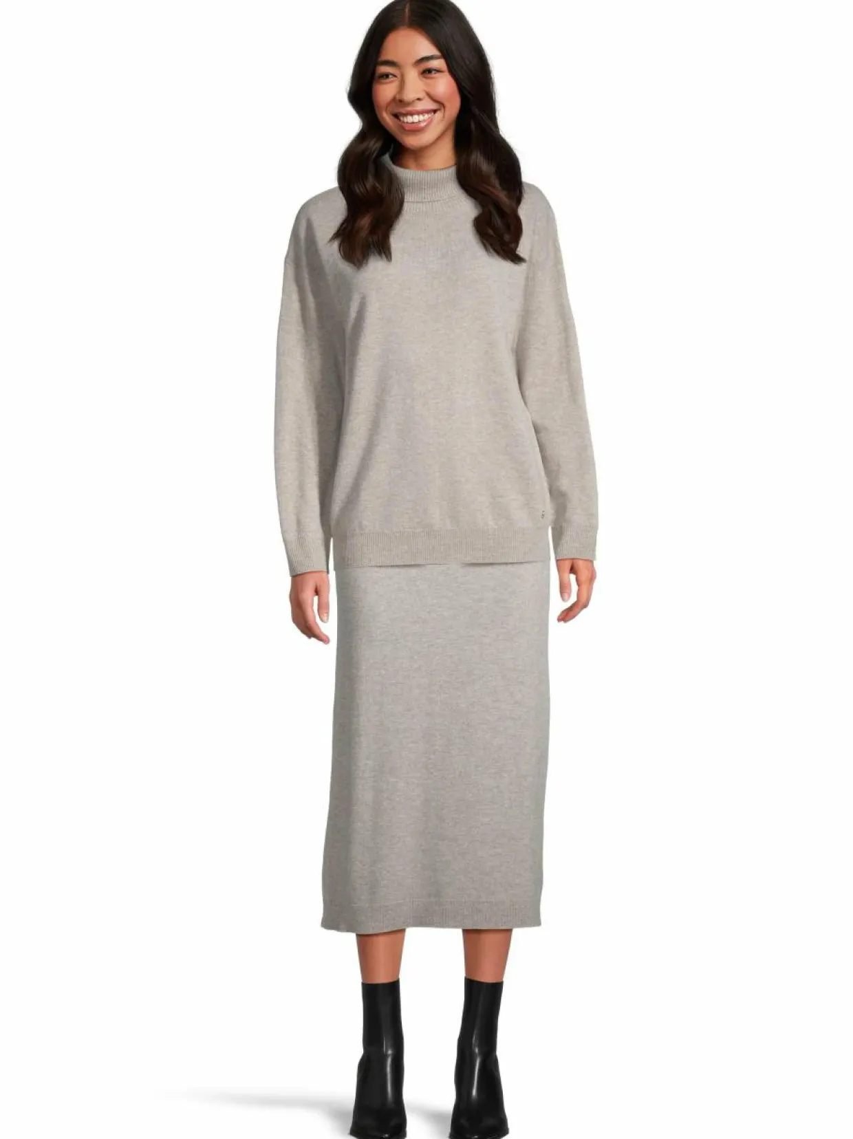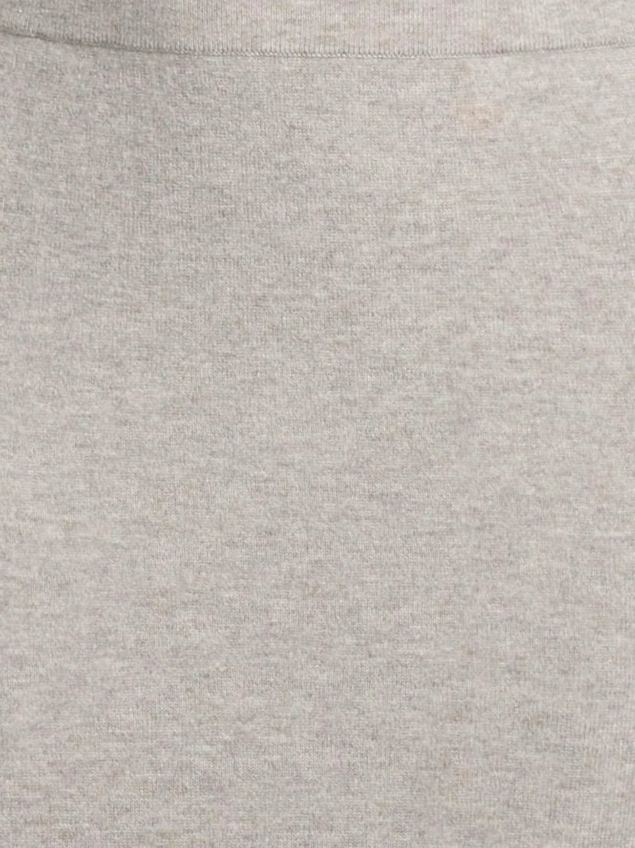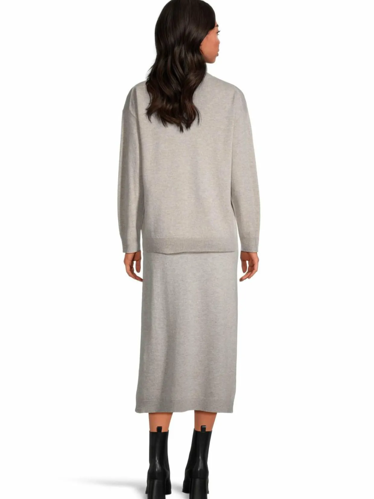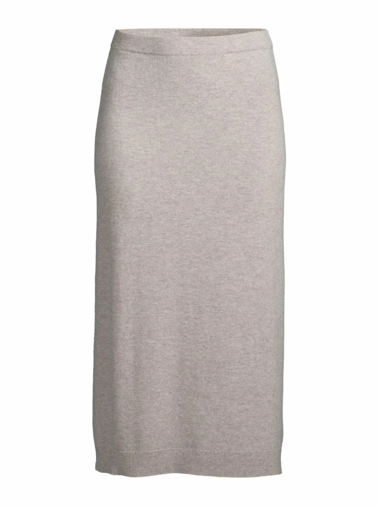 Suoralinjaisen selkeä, sileäneuloksinen hame, jossa on joustava vyötärökaitale. Materiaalina on laadukas ja pehmeä villa-kashmirsekoite. Tämän pohjepituisen hameen takapituus on 80 cm koossa M.