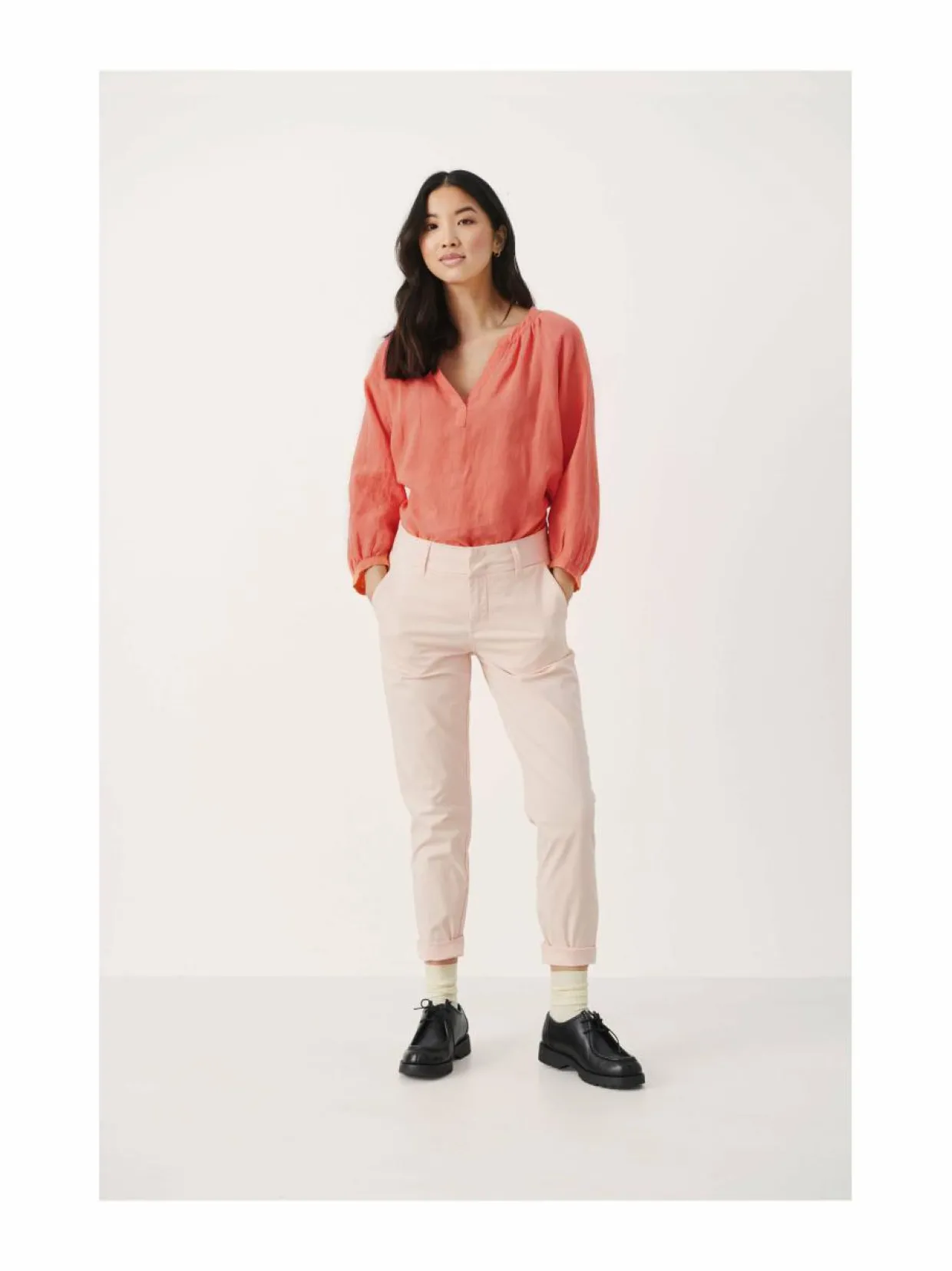 Materiaali98 % puuvilla, 2 % elastaani PesuohjeetKonepesu ValmistusmaaBangladesh Väri141312 PINK AvainsanatPART TWO, housut, chino housut, chinot