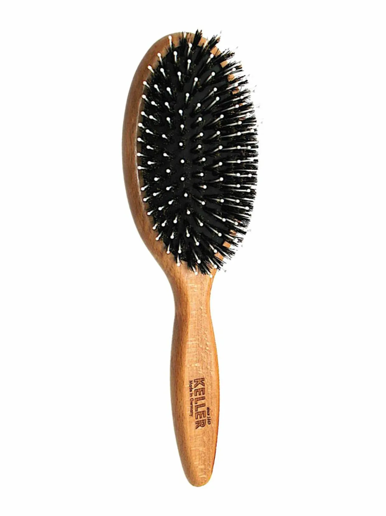 Laadukkaassa hiusharjassa on pyökkivarsi, joustopiikit ja aito harjas. Kostea hius ei veny tai katkea, koska piikit joustavat harjattaessa. Valmistettu Saksassa.