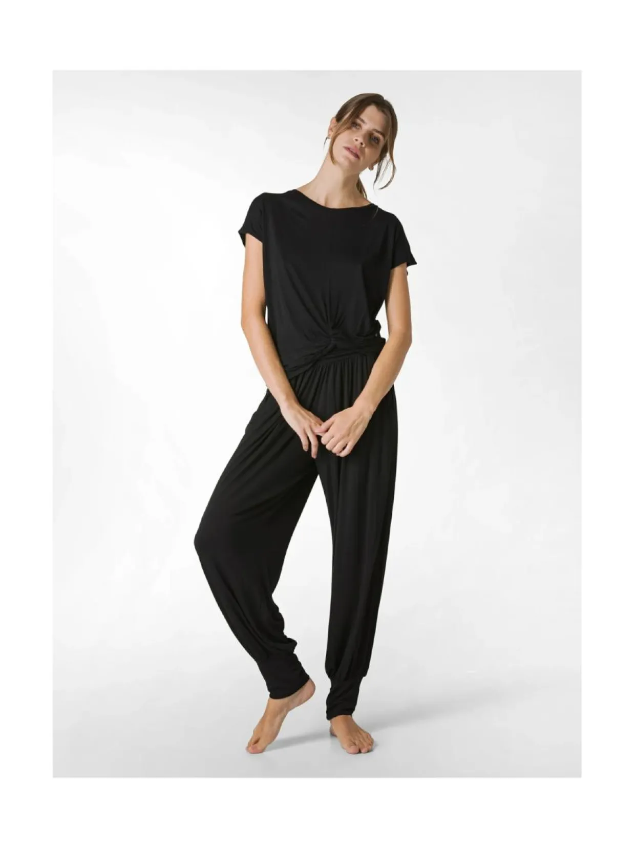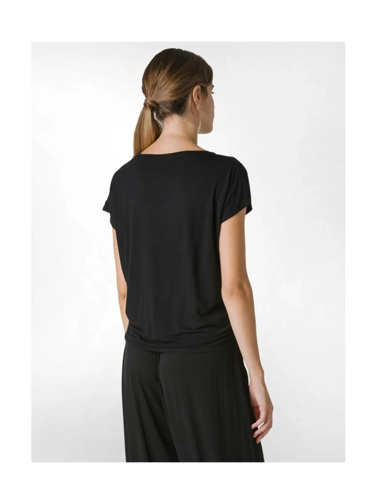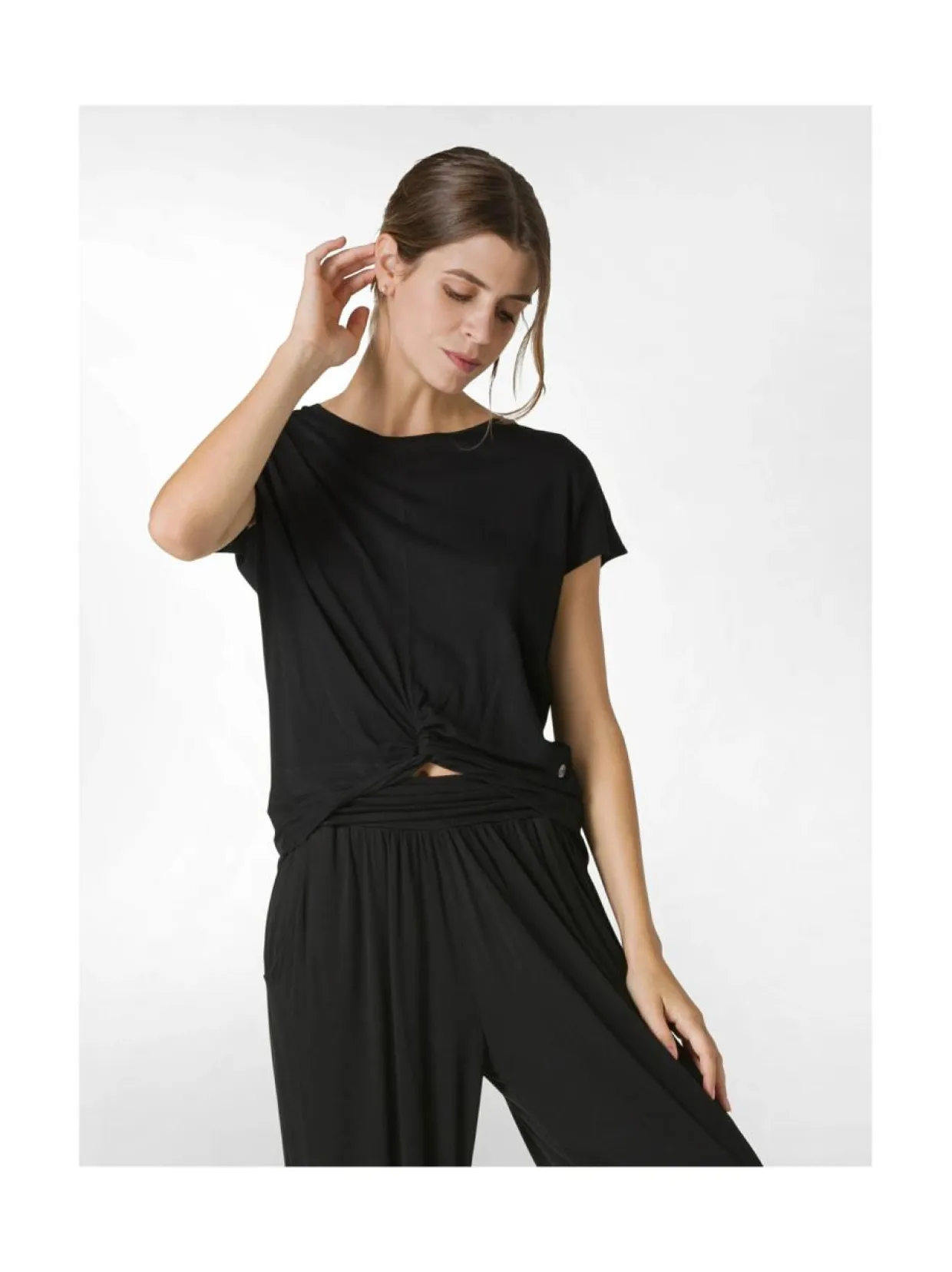 Deha naisten kaunis t-paita solmulla sopii mainiosti urheiluun kuten salille, pilatekseen tai joogaan. Solmu paidan etuosassa korostaa kauniisti vyötäröä ja antaa ilmettä urheilupaidalle. Treenipaita on ihanan pehmeä ja hengittävä ja on valmistettu 100% luonnonystävällisestä viskoosista.