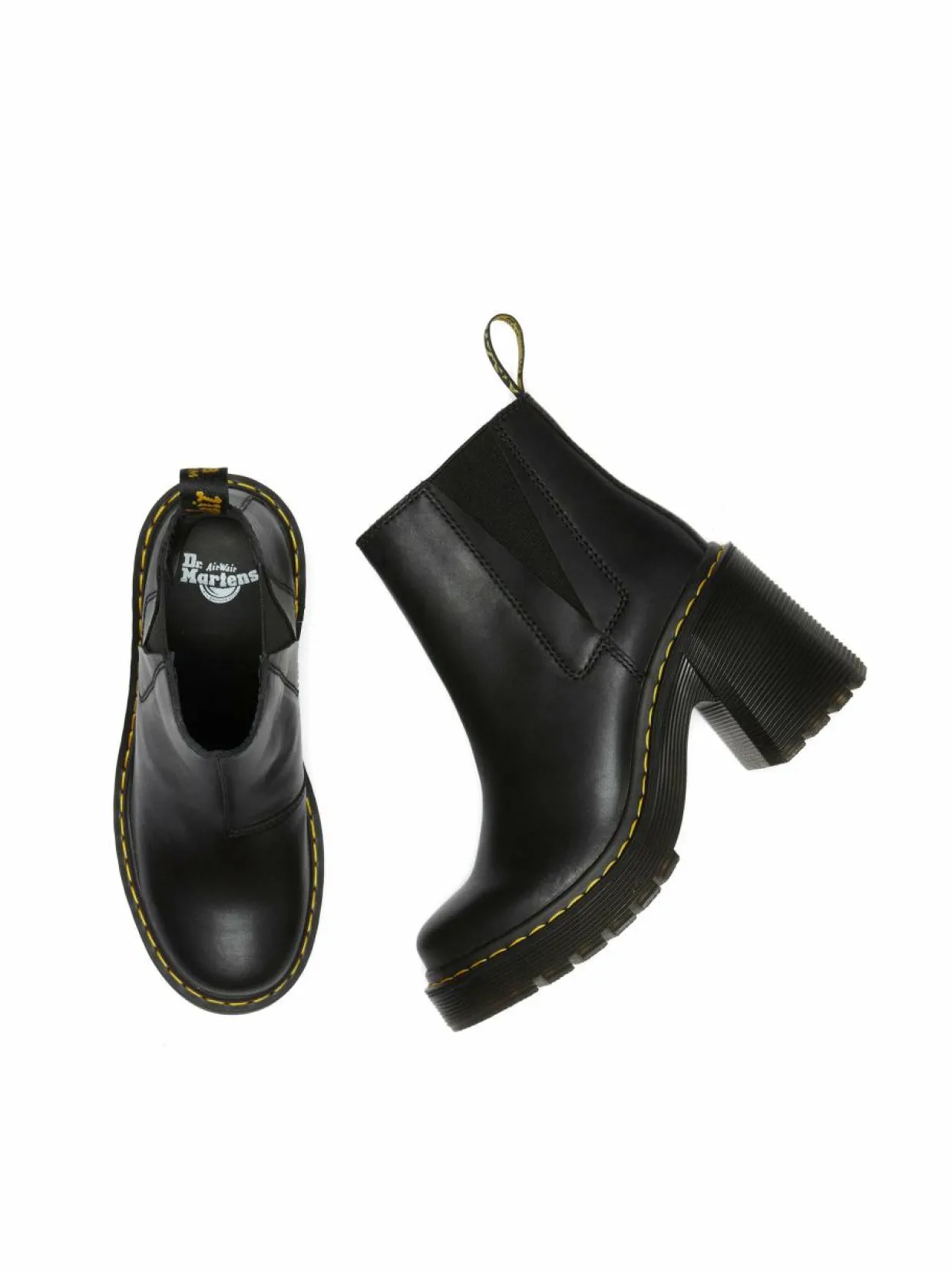 Trendikkäät Dr. Martens Spence Leather Chelsea-nilkkurit ovat valmistettu pehmeästä Sendal-nahasta. Leveä venyke varren molemmilla sivuilla ja kankainen vetolenkki takana varressa. Kokonaisena valettu paksu ja klassinen Dr Martens -pohja.