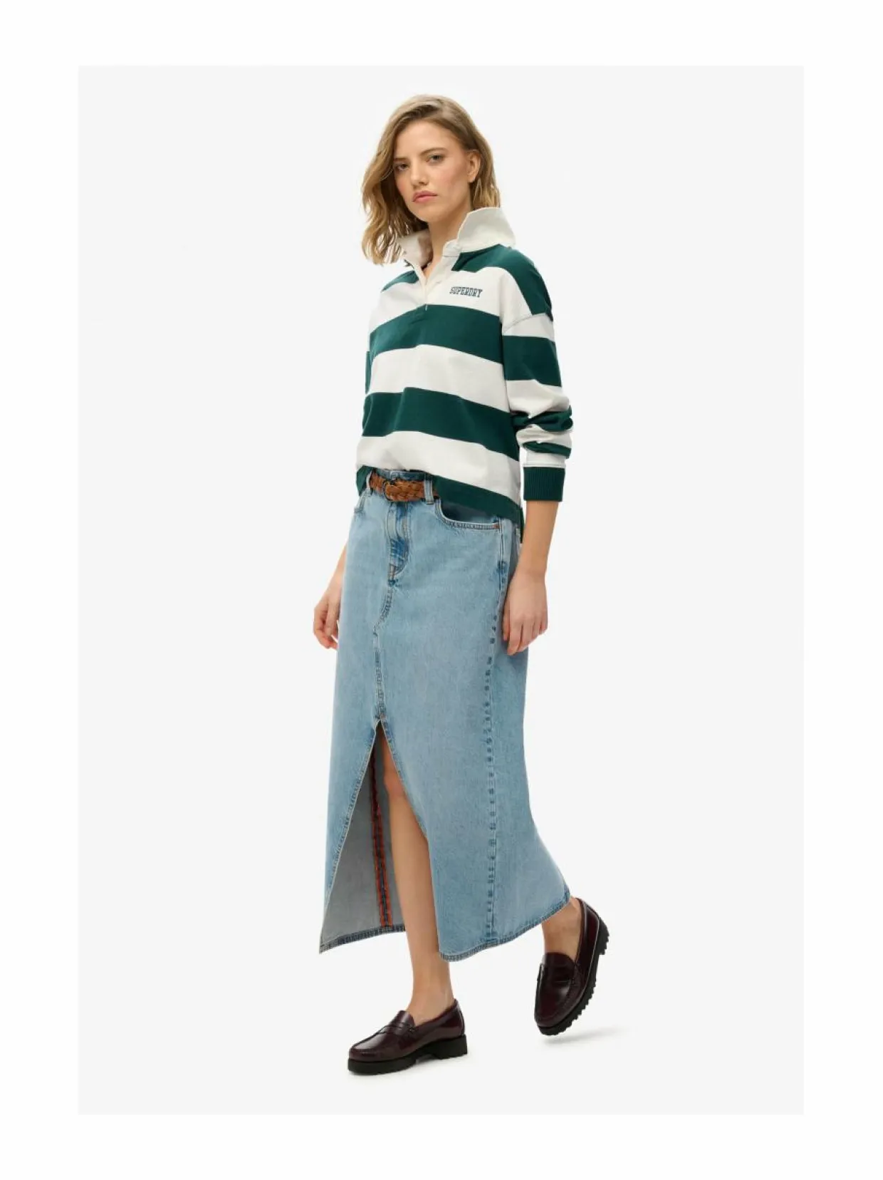 Superdryn Split Maxi -farkkuhame on valmistettu 100 % luomupuuvillasta. Hameessa on korkea vyötärö ja halkio. Hame on kestävä ja sitä on mukava käyttää. Hame on täydellinen arkikäyttöön ja se sopii yhteen monenlaisten yläosien kanssa.