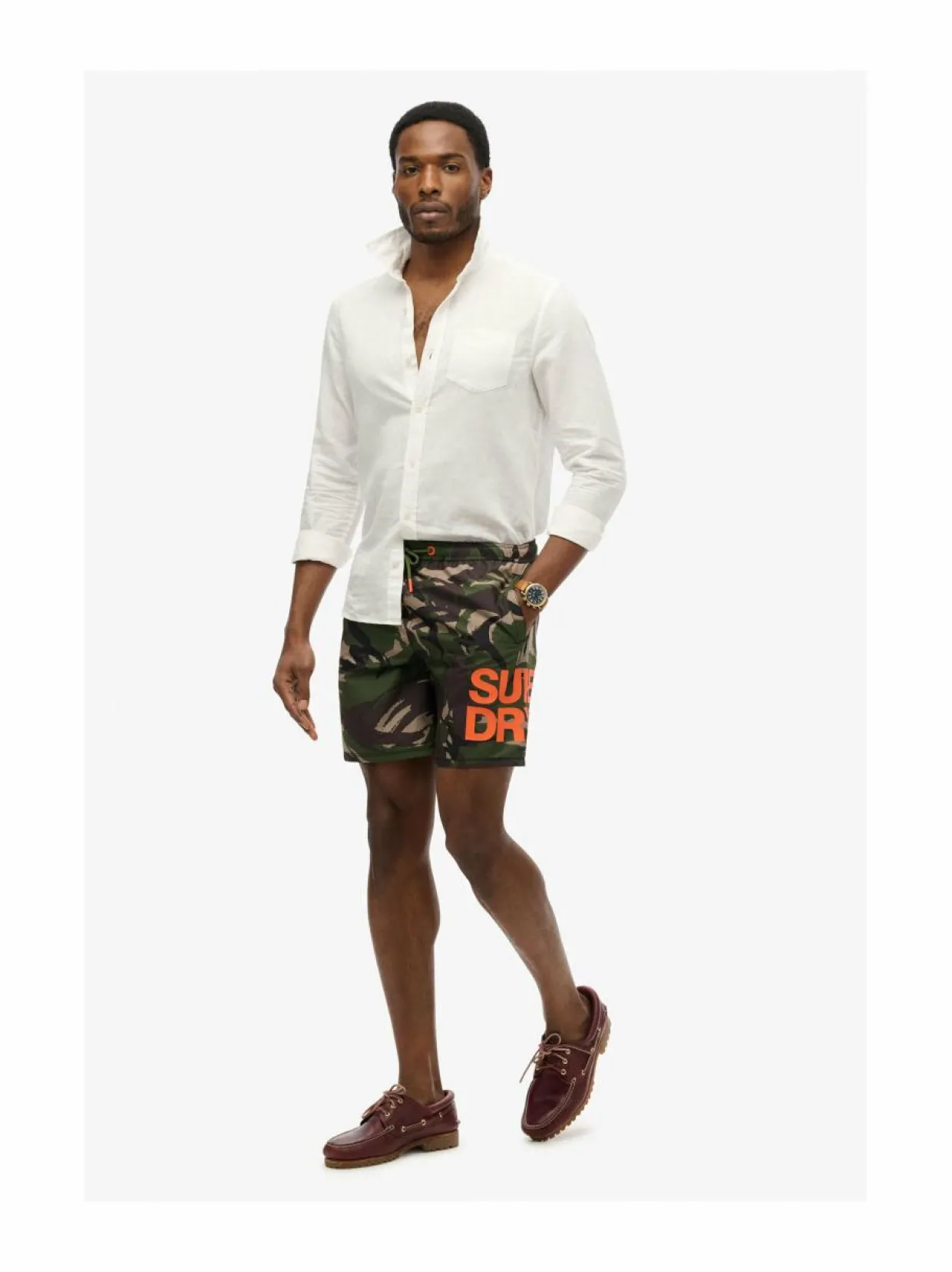Sportswear Logo 17 -uimashortsit on valmistettu kierrätetystä polyesteristä ja niissä on maastokuvio. Vyötäröllä on kiristysnauha. Sivuilla on taskut ja takana yksi vetoketjutasku. Uimahousuissa on Superdryn logo lahkeessa. Uimahousut ovat mukavat ja tyylikkäät. Ne sopivat täydellisesti uimiseen ja rannalle.