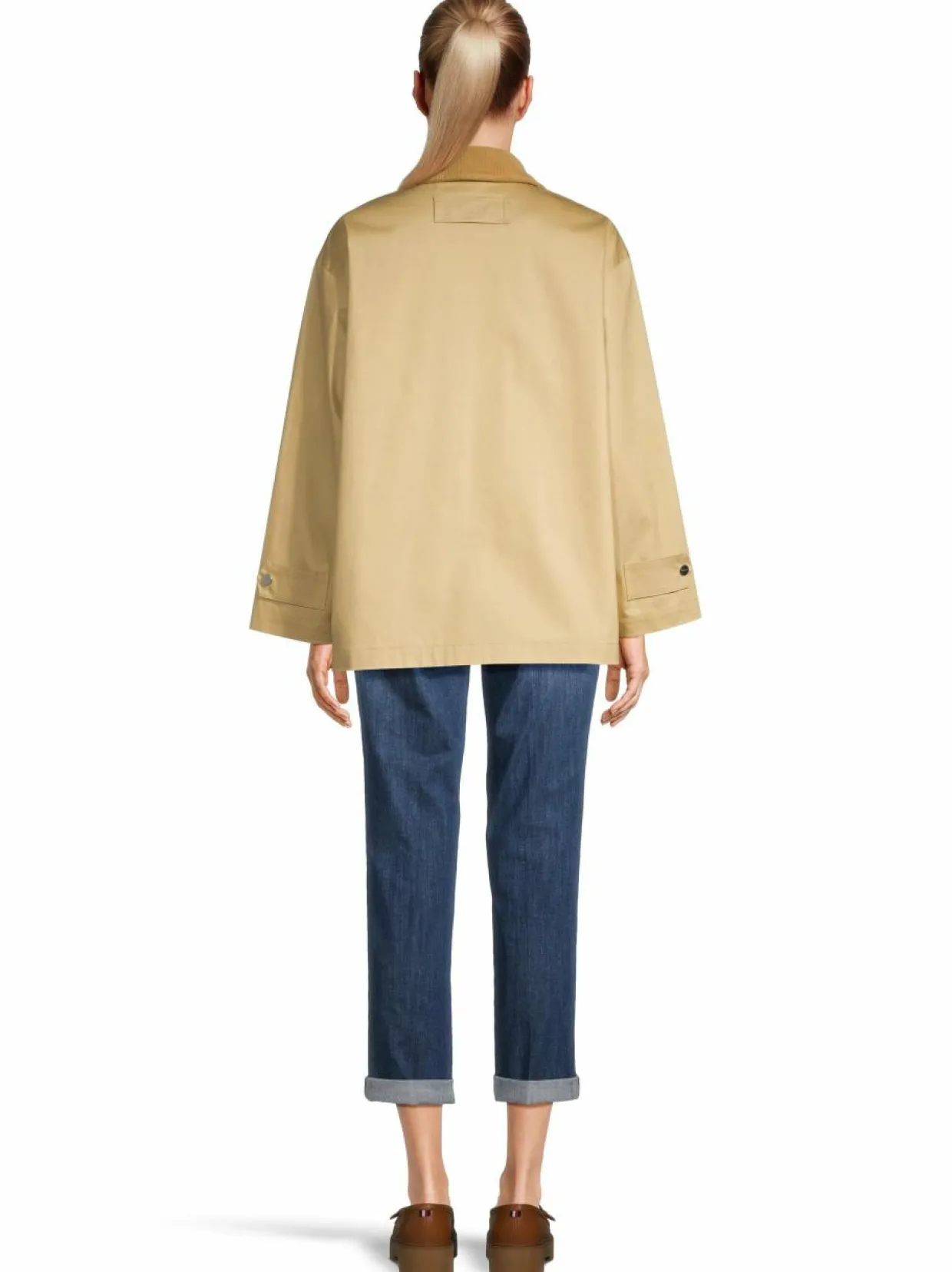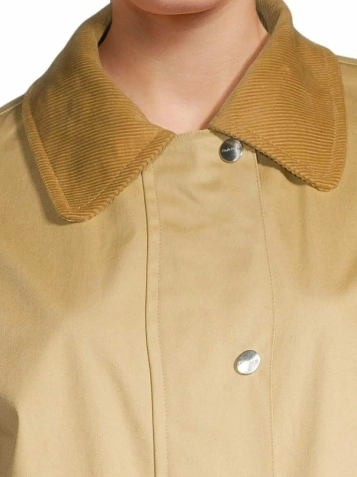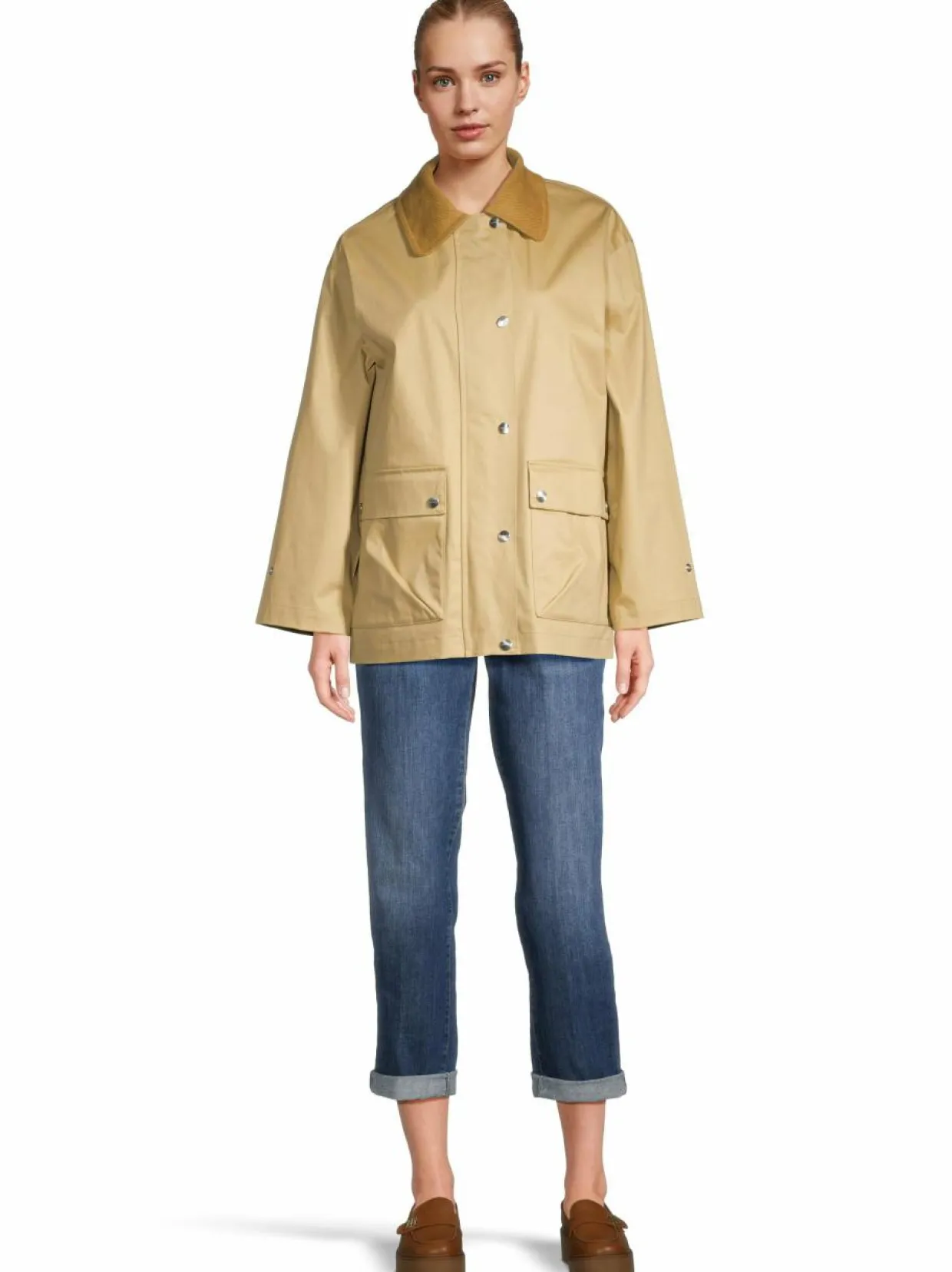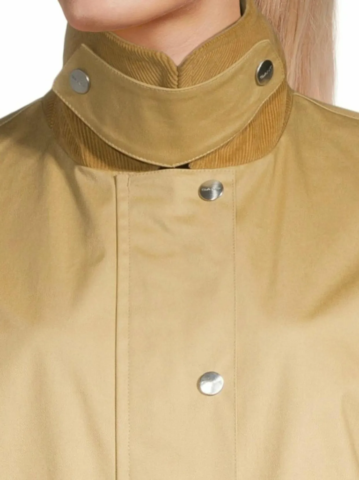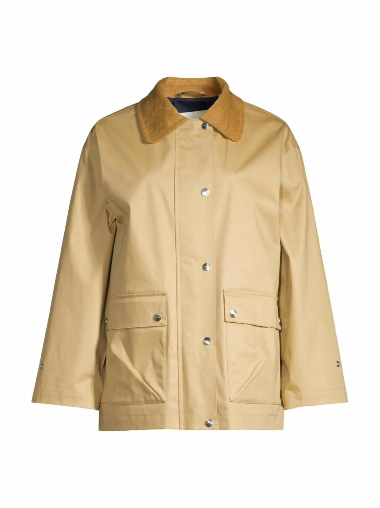 Klassista Decker-mallia edustava takki Gantilta on väljästi mitoitettu ja valmistettu 100 % puuvillasta. Siinä on kokovuori, nappilista edessä sekä painonapeilla varustetut rannekkeet. Ilmettä tuovat myös etutaskut, erivärinen vakosamettikaulus sekä takana oleva ripustuslenkki, jota koristaa kirjailtu Gant-logo. Vaate on mitoitukseltaan väljä.