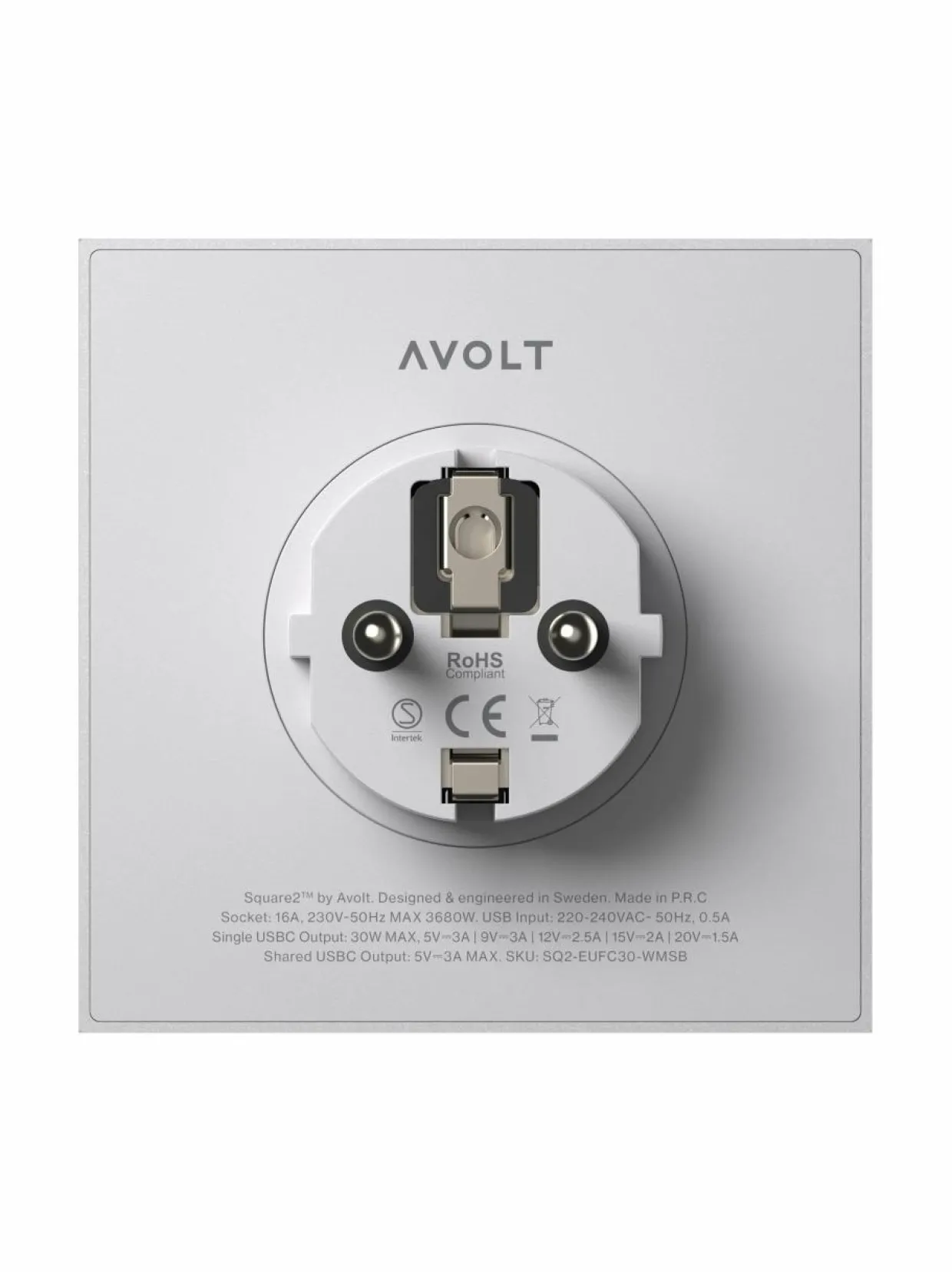 Avoltin valmistama ja J.Runströmer ja v. Lundbergin suunnittelema Square 2 USB-C. Square 2 sisältää kolme pistorasiaa ja kaksi USB C porttia. USB C-portit voivat tuottaa yhteensä 30 wattia, joten laite sopii mainiosti mobiililaitteiden kuten iPhonen, iPadin, MacBook Airin ja AirPodin pikalataukseen. Square 2 on valmistettu 20 % kierrätetystä materiaalista ja sen mattapintainen spray viimeistely on patentoitu valmistajan toimesta. Jatkojohdon pystyy kiinnittämään suoraan pistorasiaan ja se jää siihen paikoilleen. Square 2 on saatavilla useilla eri väreillä.