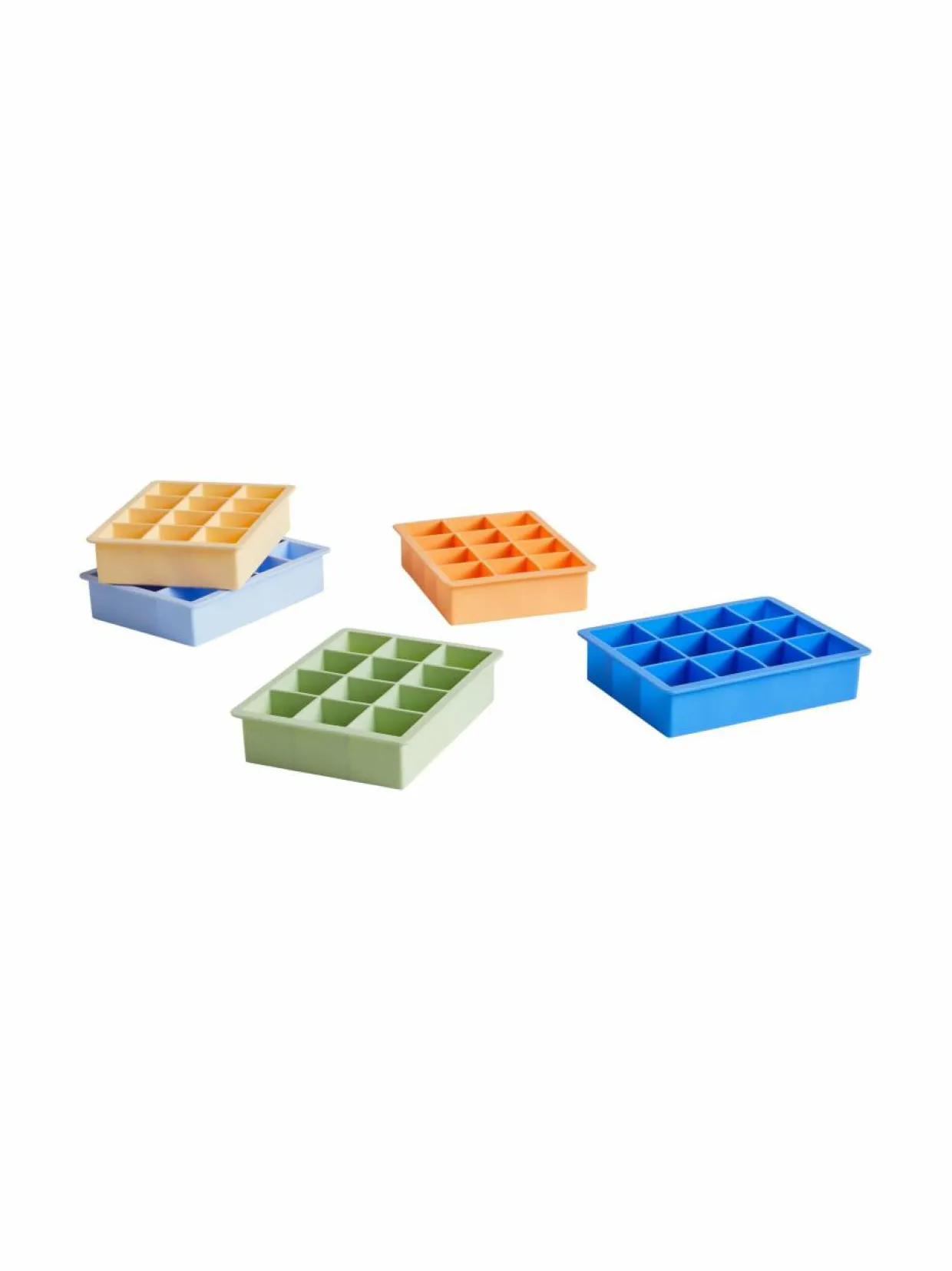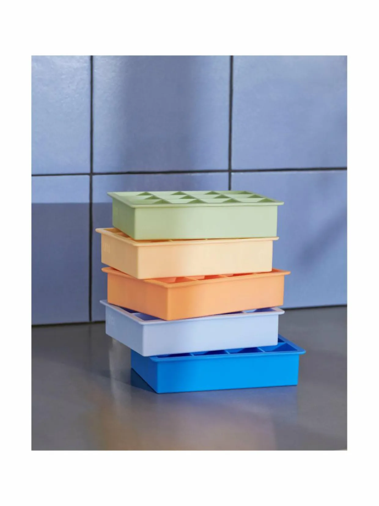 HAY:n jääkuutioalustaan mahtuu 12 erittäin suurta jääkuutiota, ja sen muotoilu on yksinkertainen ja kompakti. Valmistettu joustavasta ja kestävästä silikonista, joka on helppo irrottaa ja puhdistaa. Astianpesukoneen kestävä. Koko 4 x 8 x 14 cm.