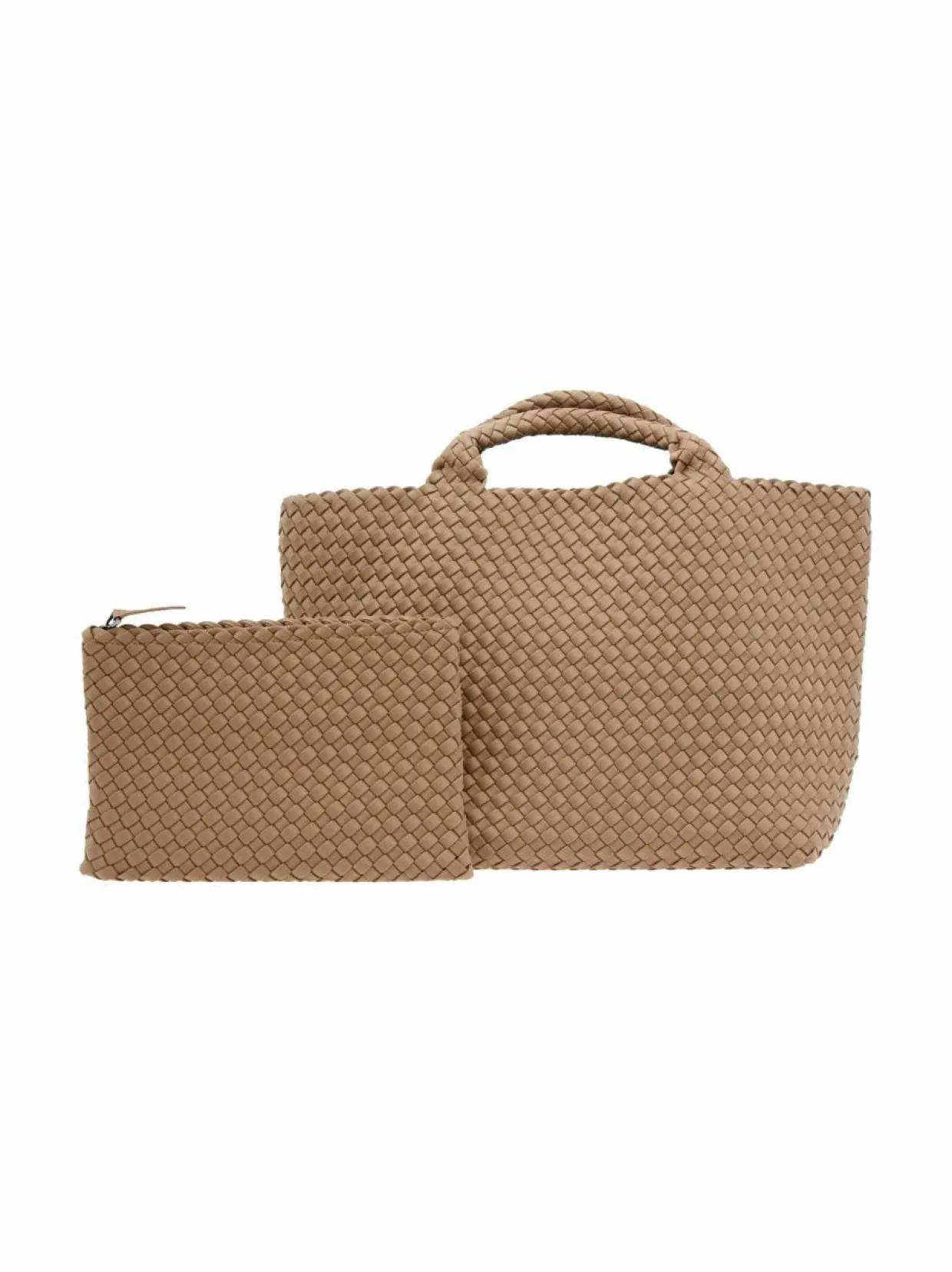 Keskikokoinen Naghedi-merkin käsinkudottu St Barths Medium Tote -laukku on kevyt ja monipuolinen klassikkolaukku, joka on ihanteellinen arkeen tai vaikka viikonlopun matkalle. Laukussa on kaksi kantokahvaa, jotka joustavat hieman ja mukautuvat pehmeästi olkapäälle. Tämä laukku on tehty käsityönä ja tästä syystä pienet sävyerot ovat mahdollisia.