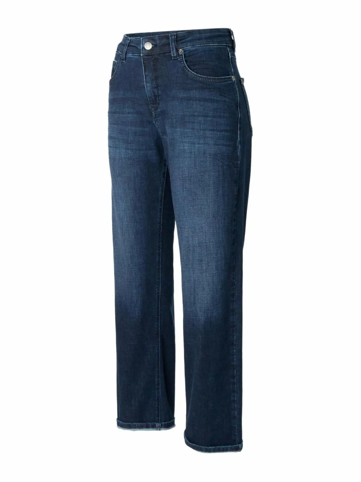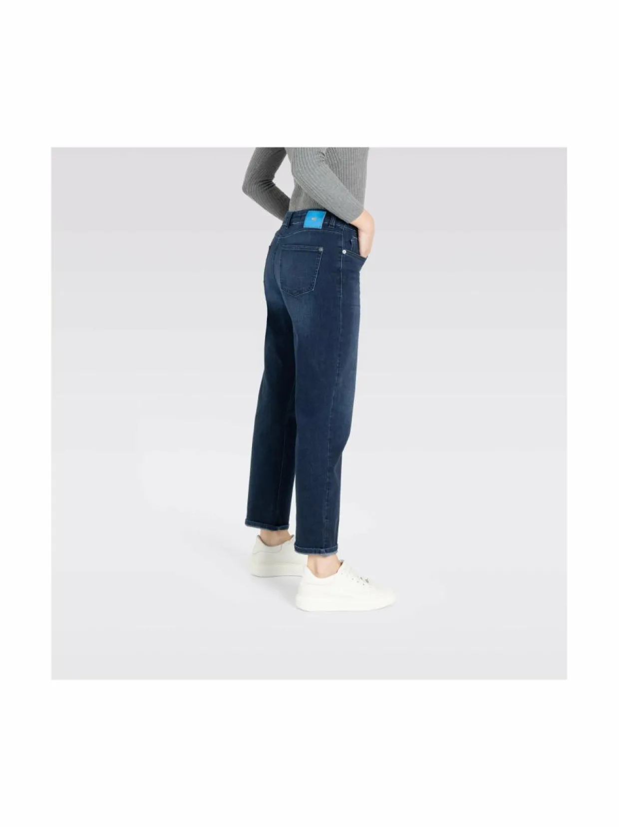 Kevyestä, pehmeän tuntuisesta ja joustavasta puuvillasekoitteesta valmistetut suoralahkeiset farkut. Yksityiskohtana käännetyt lahkeensuut, keskikorkea vyötärölinja ja hopeansävyiset niitit. Vyötärökaitaleelta löytyvät myös vyölenkit. Tyylin viimeistelee hieno kulutusefekti.