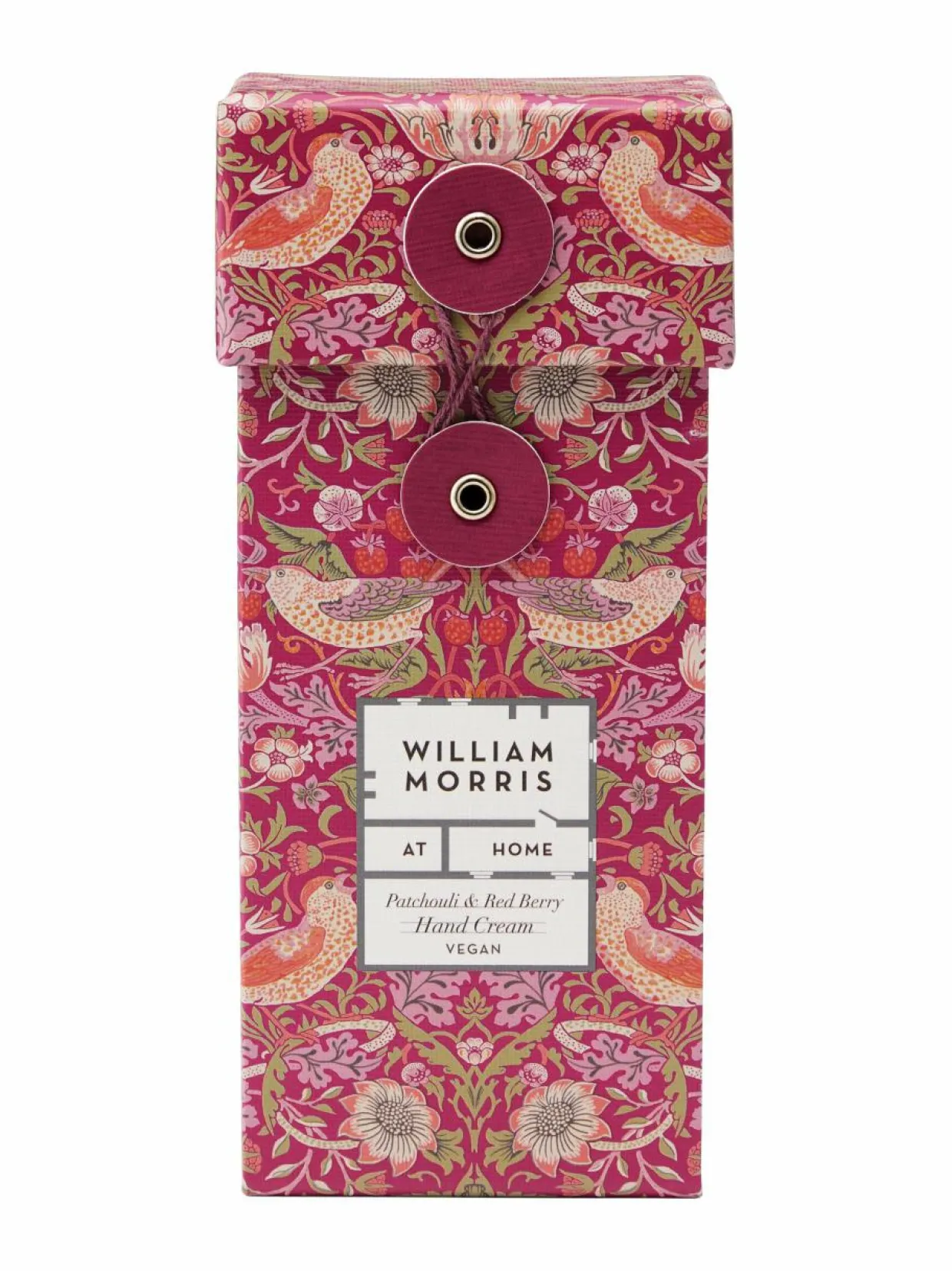 William Morris At Home Strawberry Thief -käsivoide 100 ml on runsas voide patsulin ja punaisten marjojen tuoksulla.
