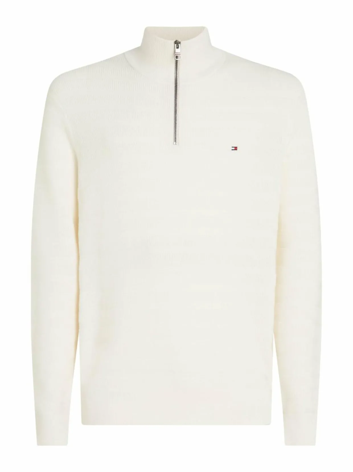 Tommy Hilfigerin Stripe Structure Zip Mock -neulepaitaa koristaa hienostunut, raidallinen struktuuri. Paidassa on mock neck -kaulus ja lyhyt vetoketju. Rintaa koristaa klassinen logobrodeeraus. Valmistettu 100 % puuvillasta.