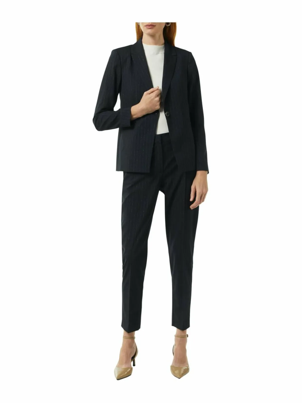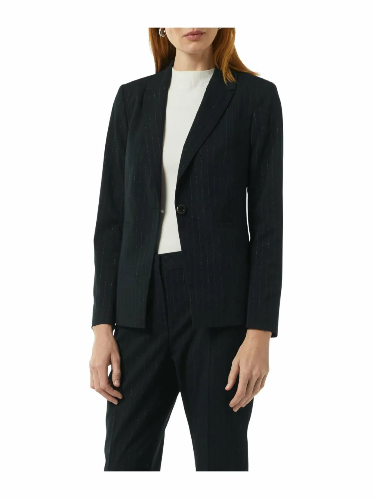 comman bleiseri henkii ajatonta tyyliä. Yhdellä napilla suljettavassa bleiserissä on kauluskäänteet ja listataskut. Bleiseri on valmistettu miellyttävästä materiaaliyhdistelmästä, johon on lisätty myös hieman joustoa. Elegantti, kimaltelevilla raidoilla koristeltu bleiseri sopii yhtä hyvin arkeen kuin juhlaan. Yhdistä se esimerkiksi farkkuihin ja tennareihin rentoon tyyliin tai pukeudu juhlavammin yhdistämällä bleiseri hameeseen tai housuihin ja korkokenkiin.